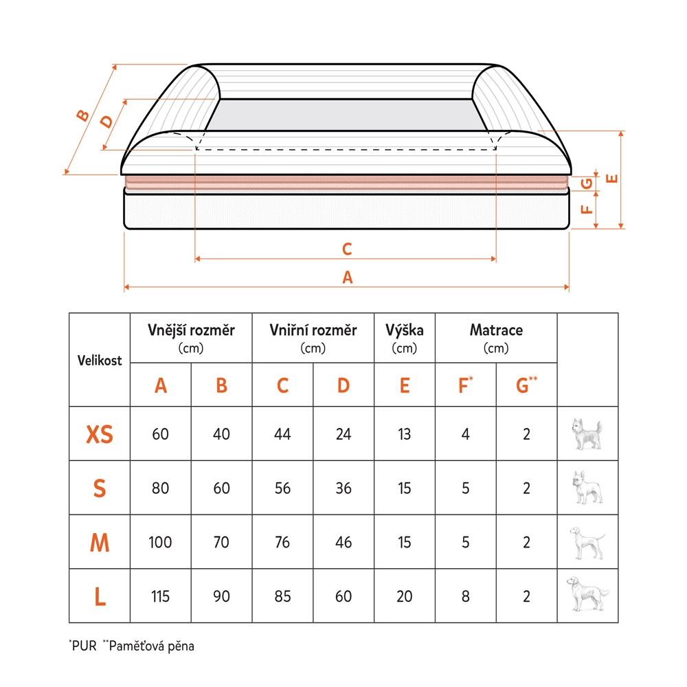 Ortopedsko ležišče Cloud XS je zasnovano za majhne pse in mladiče, ki potrebujejo stabilno oporo, udobje in miren prostor za regeneracijo. Dvoslojna vzmetnica (4 cm PUR + 2 cm spominska pena) se prilagodi telesu, enakomerno porazdeli pritisk in razbremeni sklepe ter hrbtenico. Bočnice višine 13 cm nudijo oporo glavi in ustvarjajo topel, zaščiten prostor za nemoten spanec.