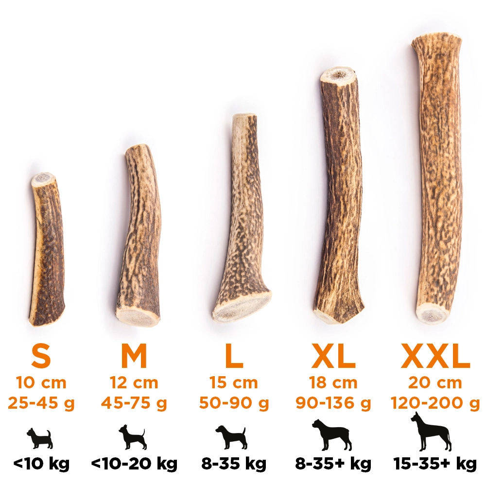 Naraven, trpežen in varen žvečilni rog za dolge ure zabave. Trd jelenov rog velikosti S se postopoma obrablja, s čimer pomaga mehansko odstranjevati obloge ter podpira zdrave zobe in dlesni. Brez vonja, brez kemije, poln naravnih mineralov, vključno s kalcijem.