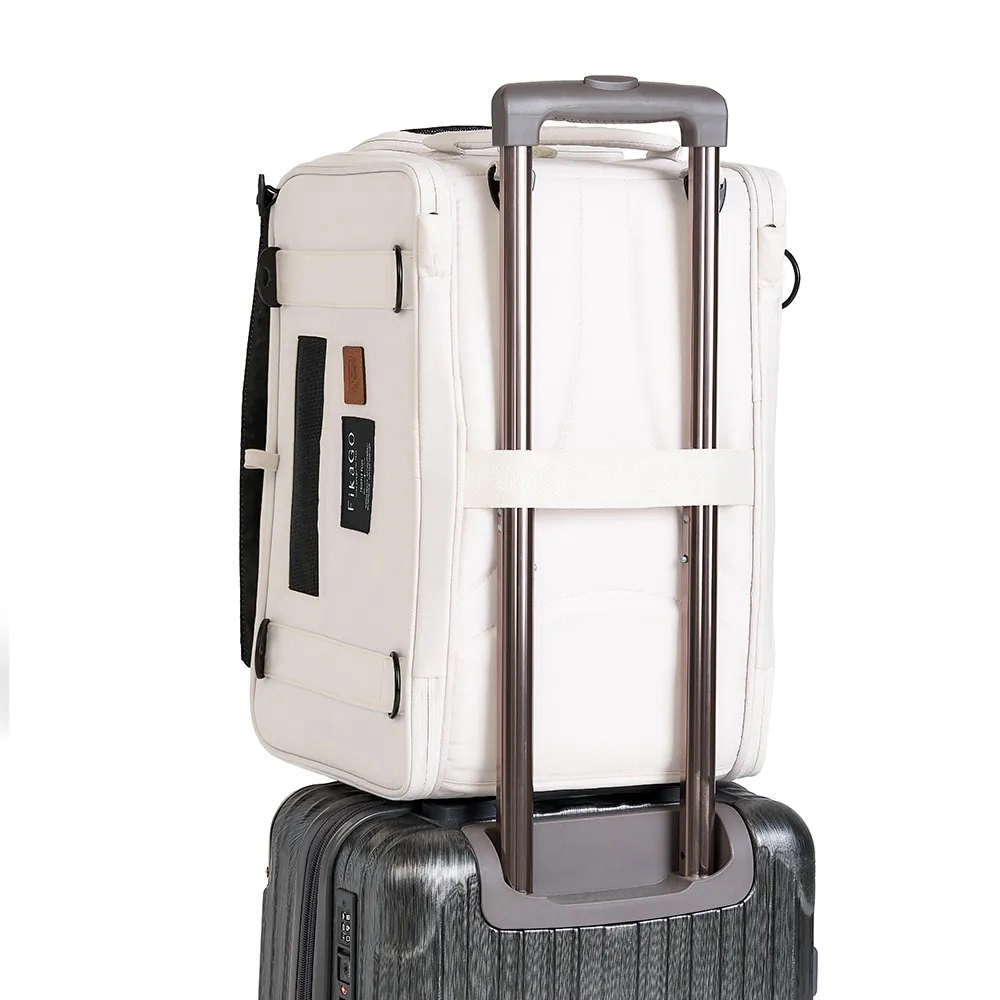 Za letalska potovanja in vsakodnevne premike: kompaktne mere 43 × 27 × 28 cm ustrezajo zahtevam večine letalskih družb za namestitev pod sedež. Snemljivi trakovi omogočajo udobno nošenje torbe preko rame ali kot nahrbtnik, da imate roke proste. V notranjosti ne manjka varnostna zaponka proti neželenemu skoku ter mehko oblazinjeno dno za miren počitek.