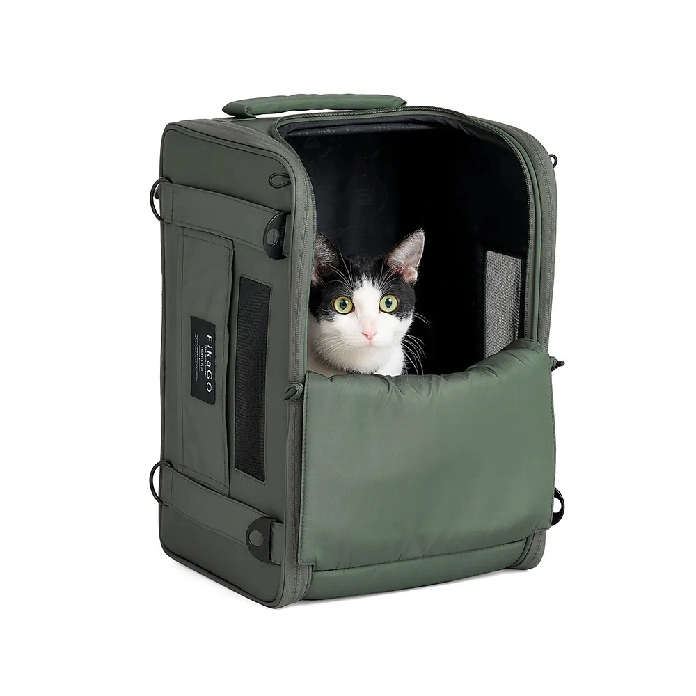 Stilski in vzdržljiv potovalni nosilec za hišne ljubljenčke do 10 kg, ki združuje udobje, varnost in raznolike načine nošenja. Zaradi kompaktnih mer se prilega pod sedež večine letalskih družb, ima zračna mrežasta okenca, oblazinjeno dno in varnostno zaponko v notranjosti. Nosite ga lahko tudi kot nahrbtnik zahvaljujoč snemljivim naramnicam.