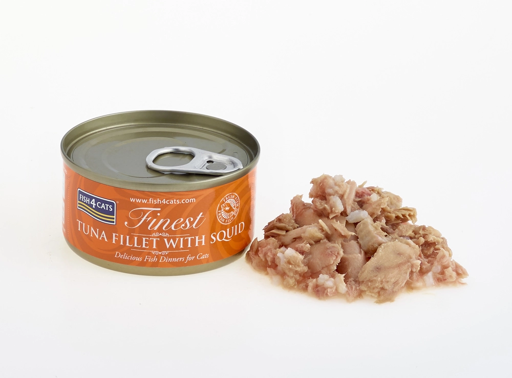 Fish4Cats Finest Tuna z lignji je priljubljena mokra hrana za razvajene mačje brbončice. Visoka vsebnost rib zagotavlja naravni vir kakovostnih beljakovin in omega-3 za podporo dlaki, koži in splošni vitalnosti. Nežna tekstura in sočna juha povečujeta okusno privlačnost tudi za izbirčne mačke.