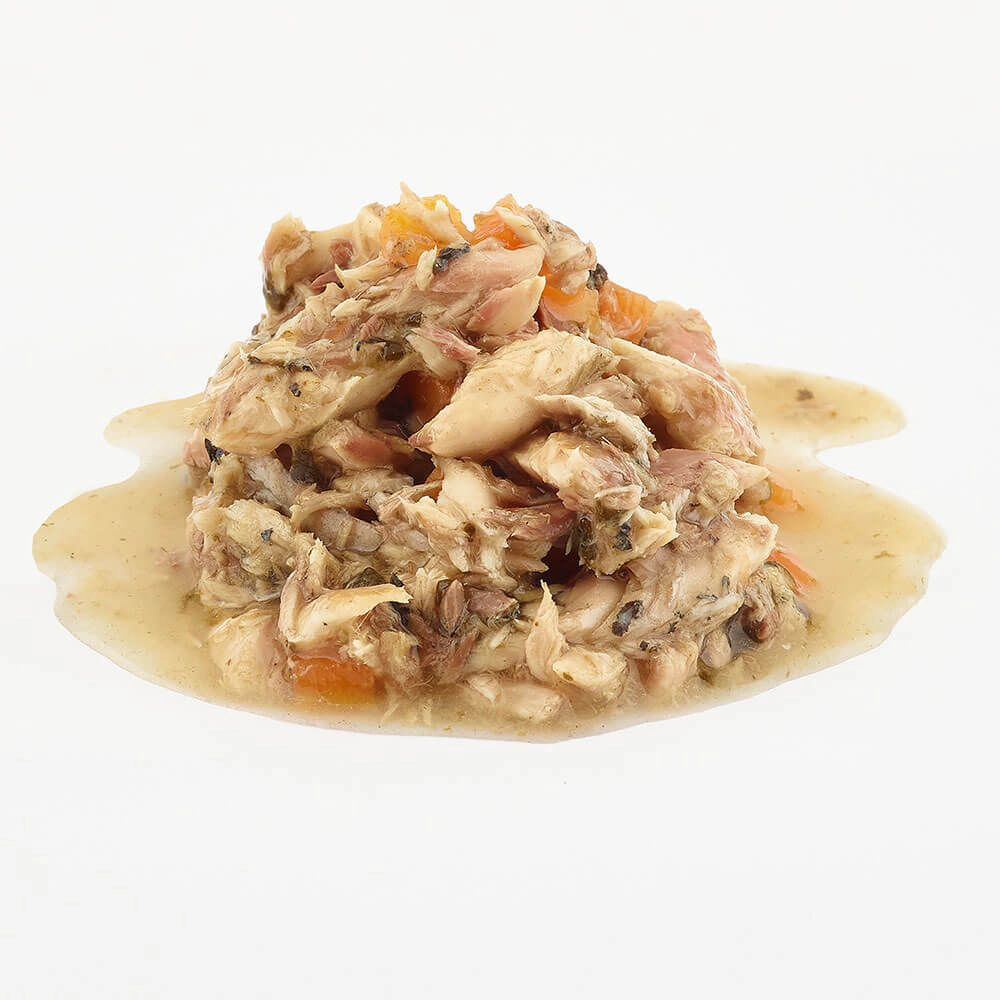 Ta sočna konzerva s skušo, korenjem in špinačo predstavlja uravnoteženo in lahko prebavljivo hrano za vsakodnevno hranjenje. Zaradi visokega deleža rib zagotavlja kakovostne živalske beljakovine, naravne omega maščobne kisline ter podpira vitalnost in sijočo dlako. Brez žit in umetnih dodatkov – le čiste surovine za zadovoljno pasje trebuščke.