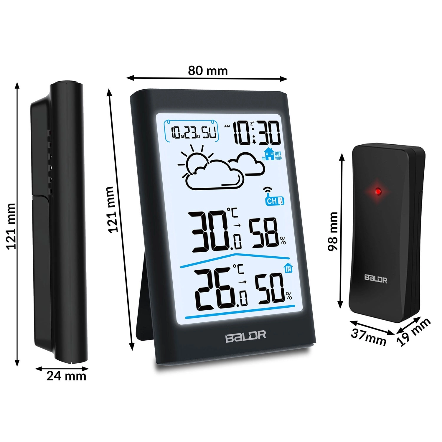 Brezžični senzor z dosegom do 60 m se samodejno seznani s postajo in podpira preklapljanje kanalov za dodajanje dodatnih tipal. Intuitivno upravljanje, berljive velike številke in elegantna črna izvedba se podajo v vsak interier – na mizo ali na steno. Preklopna dnevna/nočna osvetlitev zagotavlja udobno branje v vseh pogojih.