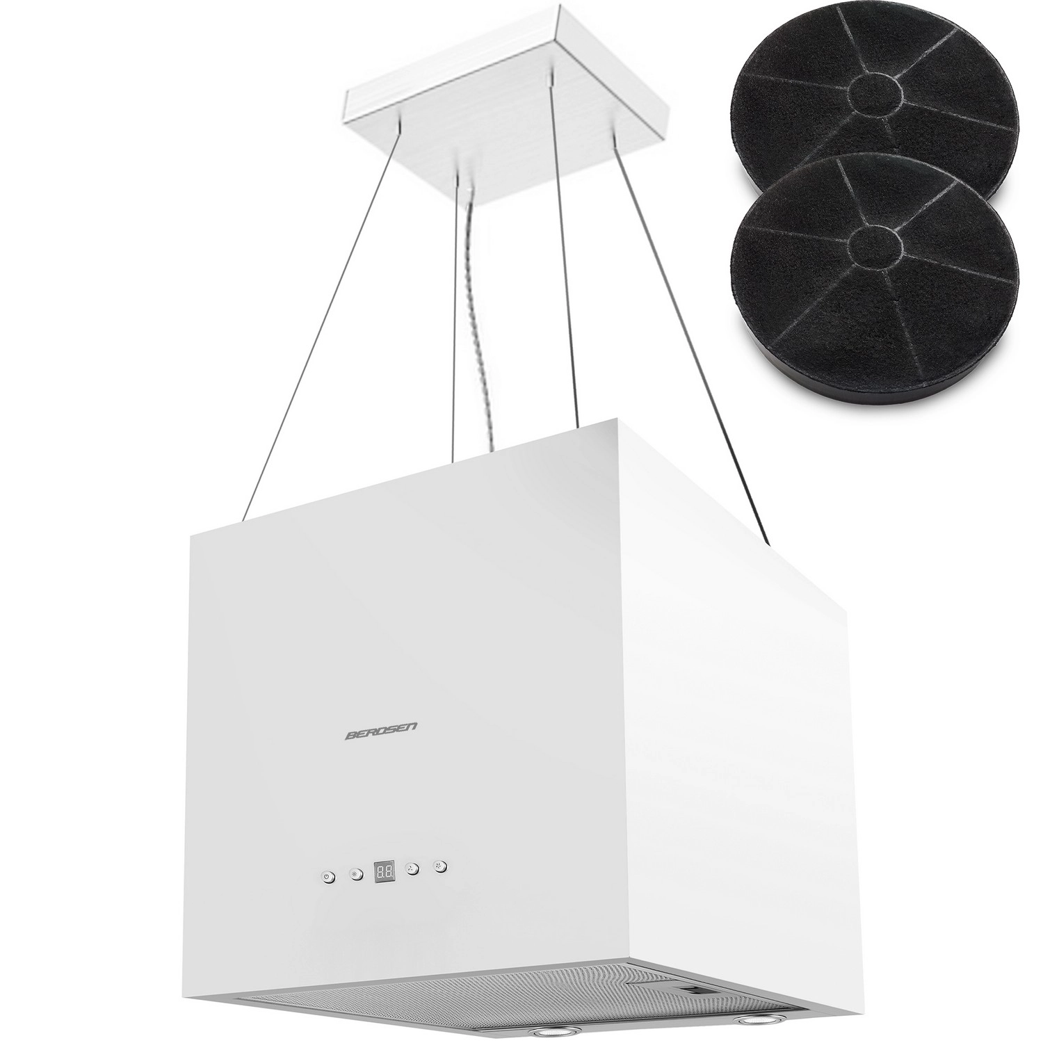 Elegantna otočna kuhinjska napa Berdsen širine 40 cm v beli barvi združuje prestižno nerjavno izvedbo, varčno LED osvetlitev in učinkovito recirkulacijo zahvaljujoč 2 ogljenima filtroma v kompletu. Ponuja 3 hitrosti, elektronsko‑mehansko upravljanje z gumbi in daljinskim upravljalnikom ter samodejni izklop. Odlično se poda v moderne in minimalistične kuhinje.