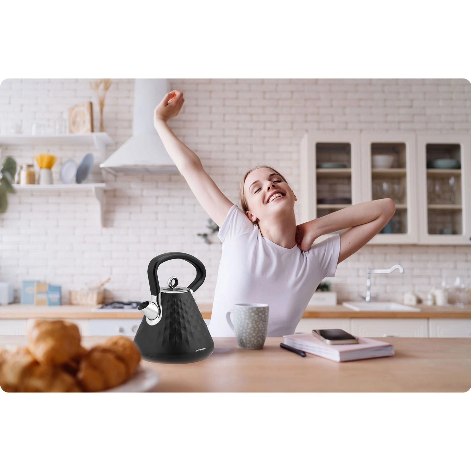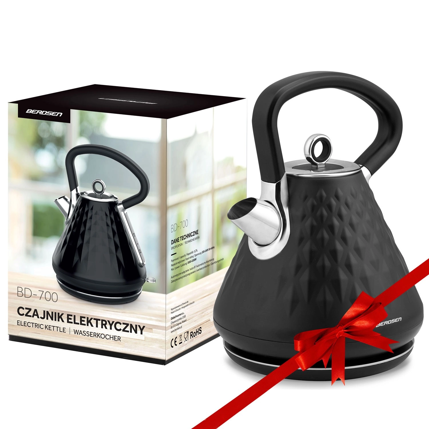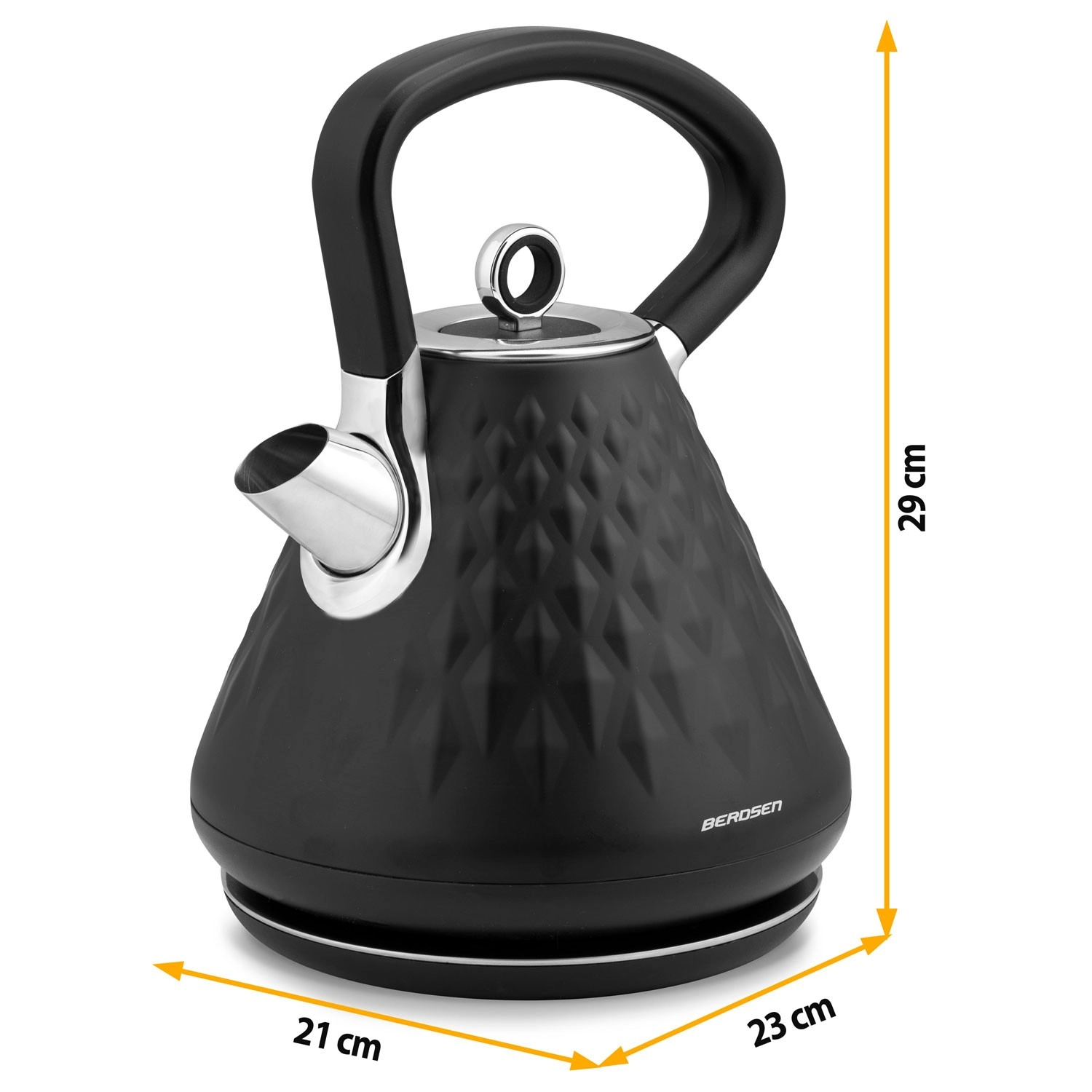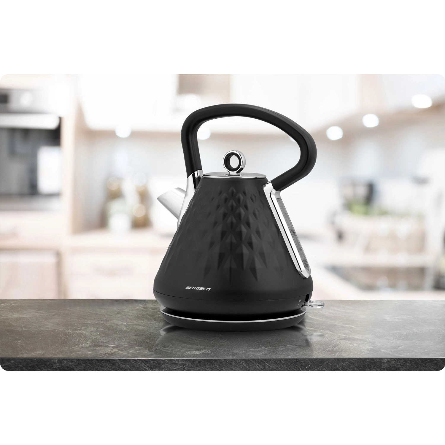 Grelnik Berdsen s kovinskim ohišjem in elegantno mat površino s prostorskim reliefom bo okras vsake kuhinje. Zahvaljujoč močnemu grelcu 1850–2200 W vodo zavre v hipu, medtem ko 360° vrtljiva osnova in skrit prostor za kabel zagotavljata maksimalno udobje na delovni površini.