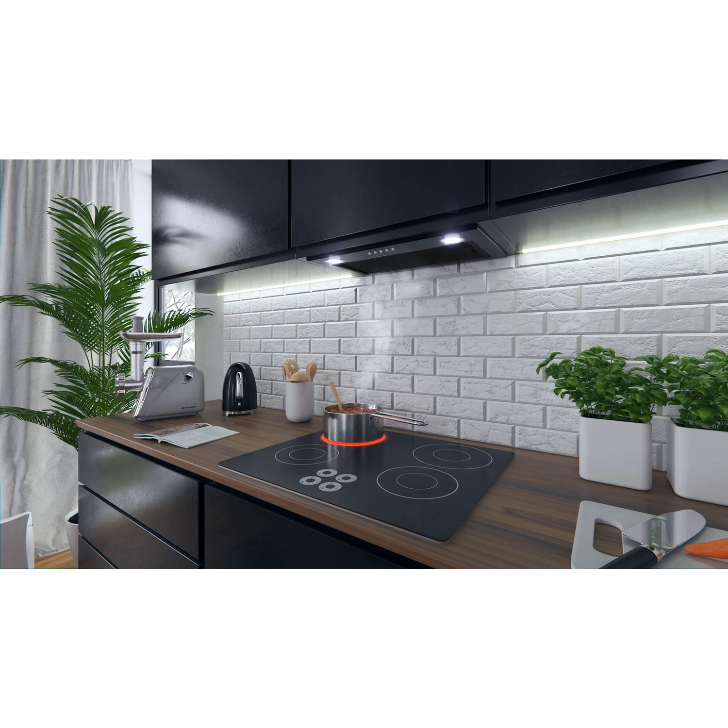 Diskretna in praktična kuhinjska napa, ki bo postala naravni del vaše kuhinje. Minimalistična zasnova v črni barvi se odlično ujema z modernimi linijami, medtem ko zmogljiv motor poskrbi za odvod pare, vonjav in vlage. Integrirana LED osvetlitev enakomerno osvetli kuhališče in poveča udobje pri kuhanju.