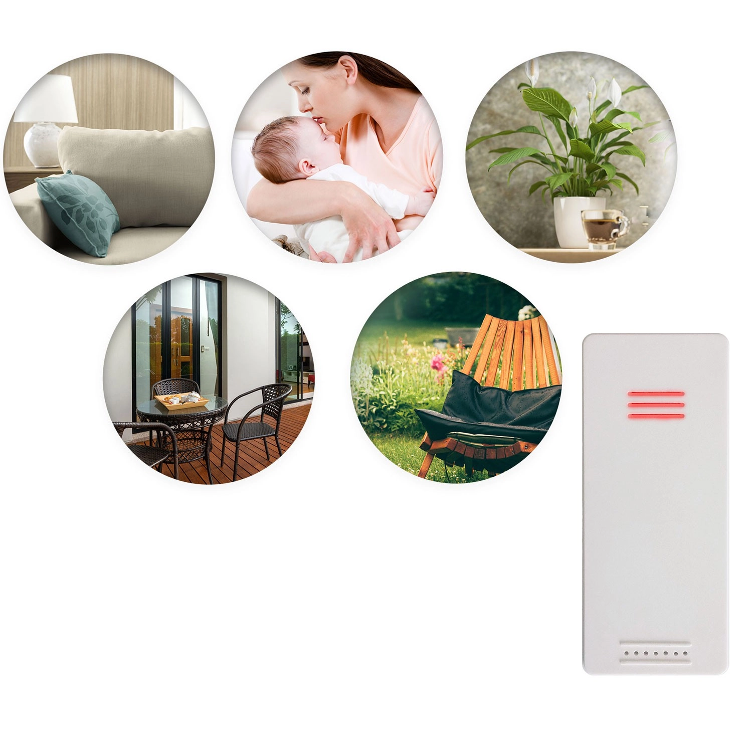Razširite svojo vremensko postajo s kakovostnim brezžičnim senzorjem, ki natančno spremlja temperaturo od −40 °C do 70 °C in vlažnost 20–95 %. Zahvaljujoč frekvenci 433,92 MHz se podatki prenašajo zanesljivo in na daljše razdalje.