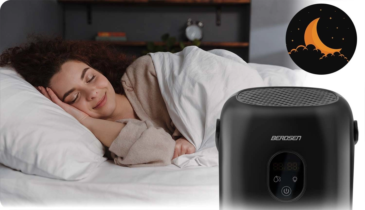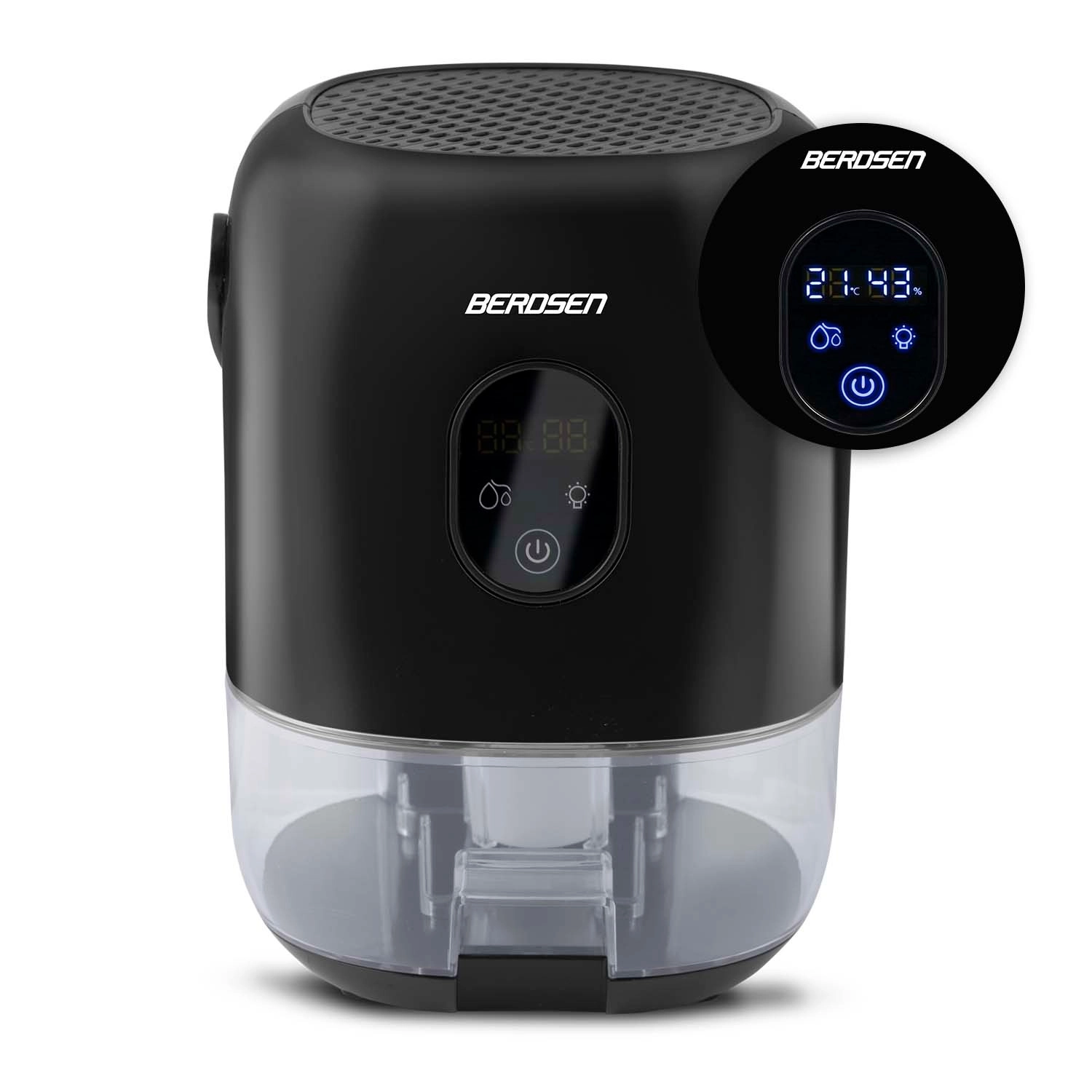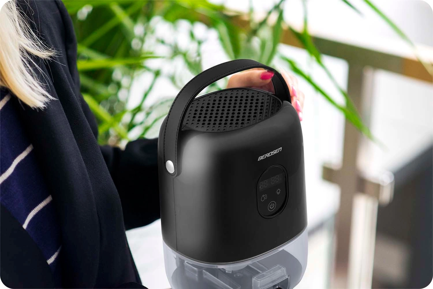 Kompaktni razvlaževalnik zraka BERDSEN BR-10B učinkovito znižuje vlago v prostoru, izboljšuje kakovost zraka in pospeši sušenje perila. Ponuja tiho delovanje do 34 dB, nizko porabo 22,5 W, velik snemljiv rezervoar 1000 ml ter pregleden zaslon na dotik z indikacijo vlažnosti. Slogovna zasnova z LED osvetlitvijo in praktičnim usnjenim paščkom se poda v vsak interier.