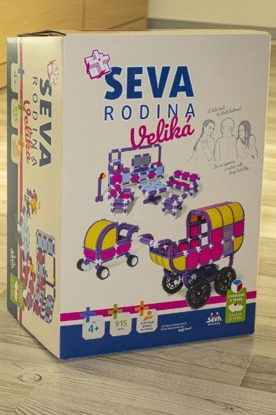 Sestavljanke SEVA sodijo med češke klasike – na trgu so od leta 1979, njihova priljubljenost pa še narašča. Raznoliki deli omogočajo otrokom in odraslim gradnjo vozil, strojev, letal, zgradb, pohištva ali kuhinje. Ta komplet Rodina velika ponuja resnično bogato vsebino za ure ustvarjalne zabave.