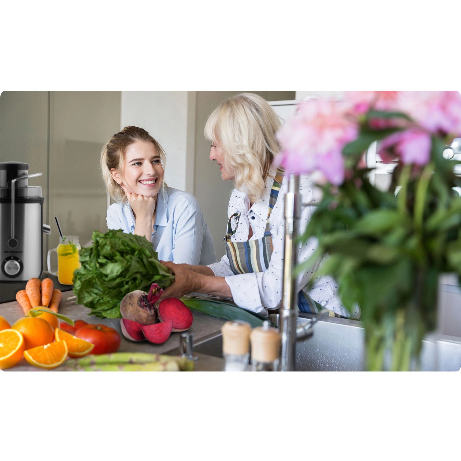 Izbrane dele sokovnika lahko perete v pomivalnem stroju. Posodici za sok (0,5 l) in pulpo (1,4 l) olajšata vsakodnevno uporabo.