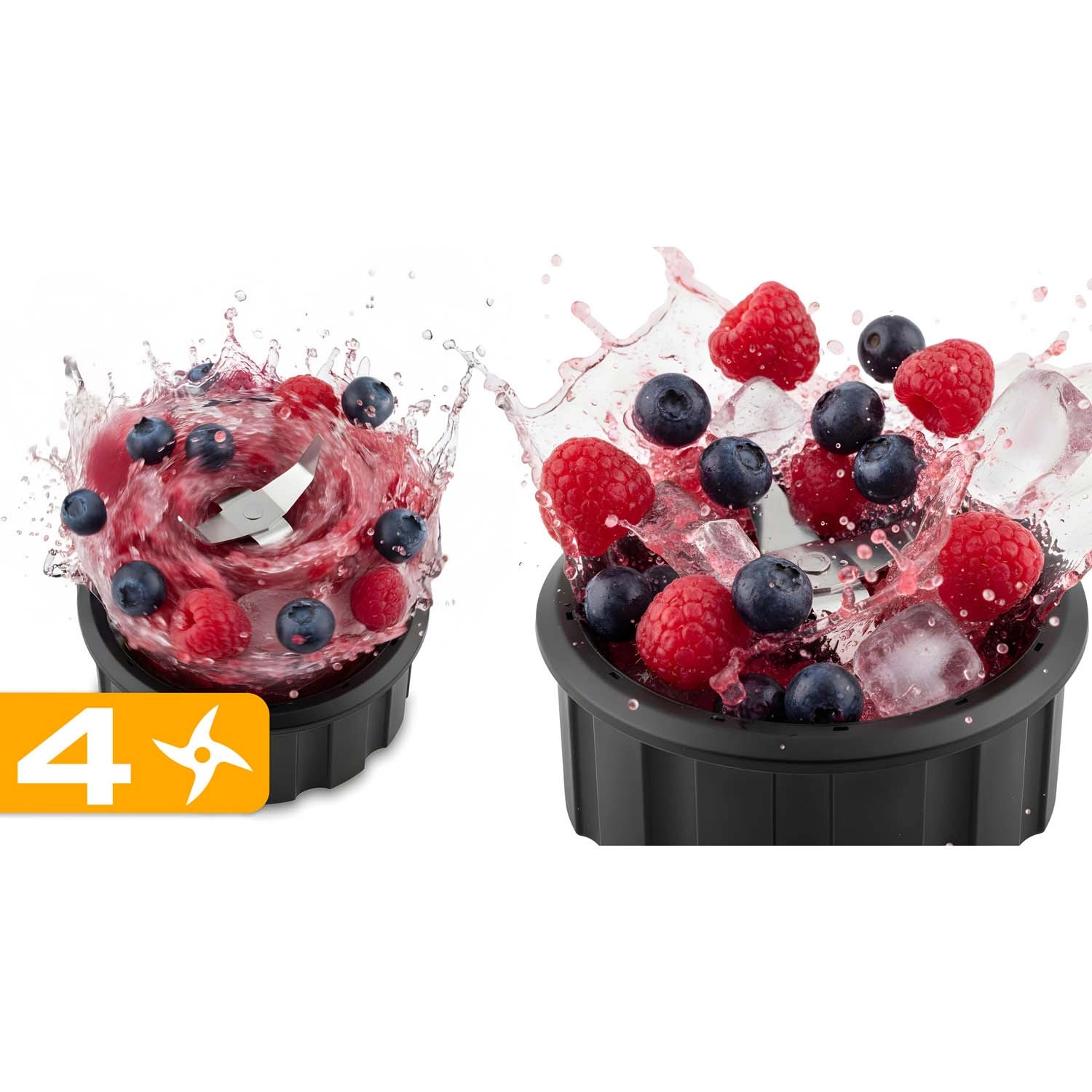 Intuitivno upravljanje z osvetljenimi gumbi in vrtljivim izbirnikom omogoča hitro nastavitev idealnega načina: Smoothie za kremaste napitke, Ice Crush za led in Pulse za natančno sekljanje. Protizdrsne nogice zagotavljajo stabilnost, varnostni mehanizmi pa ščitijo pred nepravilno sestavo in pregrevanjem.