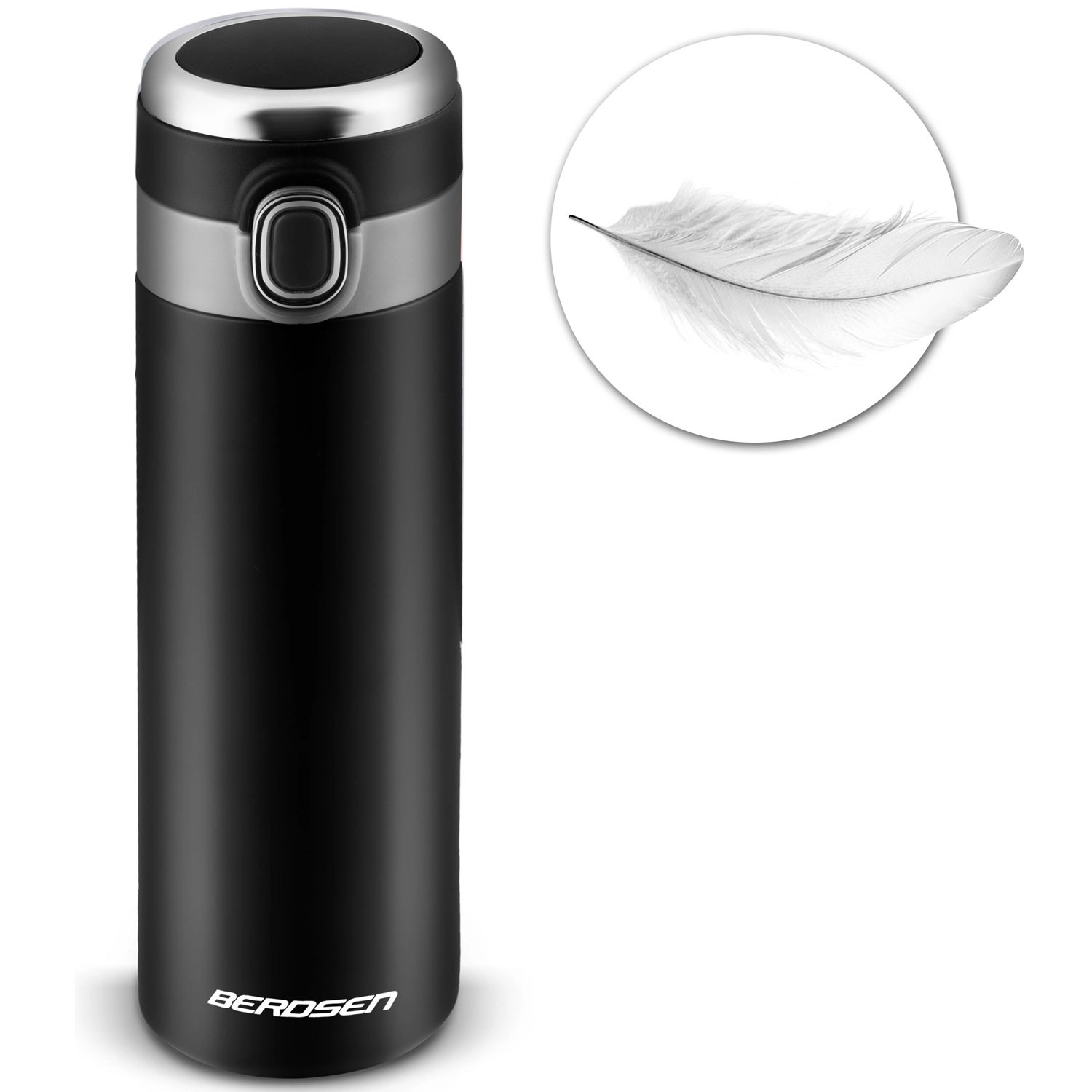 Lahka in trpežna vakuumska termovka s prostornino 450 ml z vgrajenim termometrom v pokrovčku za takojšen nadzor temperature napitka. Zahvaljujoč tehnologiji TermoLite™ ohranja tople napitke do 12 ur in hladne do 24 ur. Ima nerjavno dvostensko konstrukcijo, tesnilni pokrovček z gumbom za udobno odpiranje z eno roko ter varovalo proti nenamernemu odpiranju. Idealna za potovanja, v avto in za pisarno.