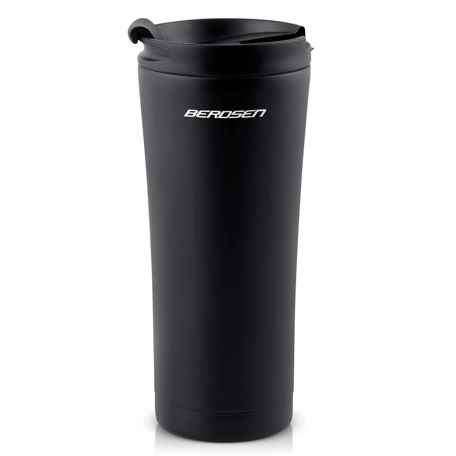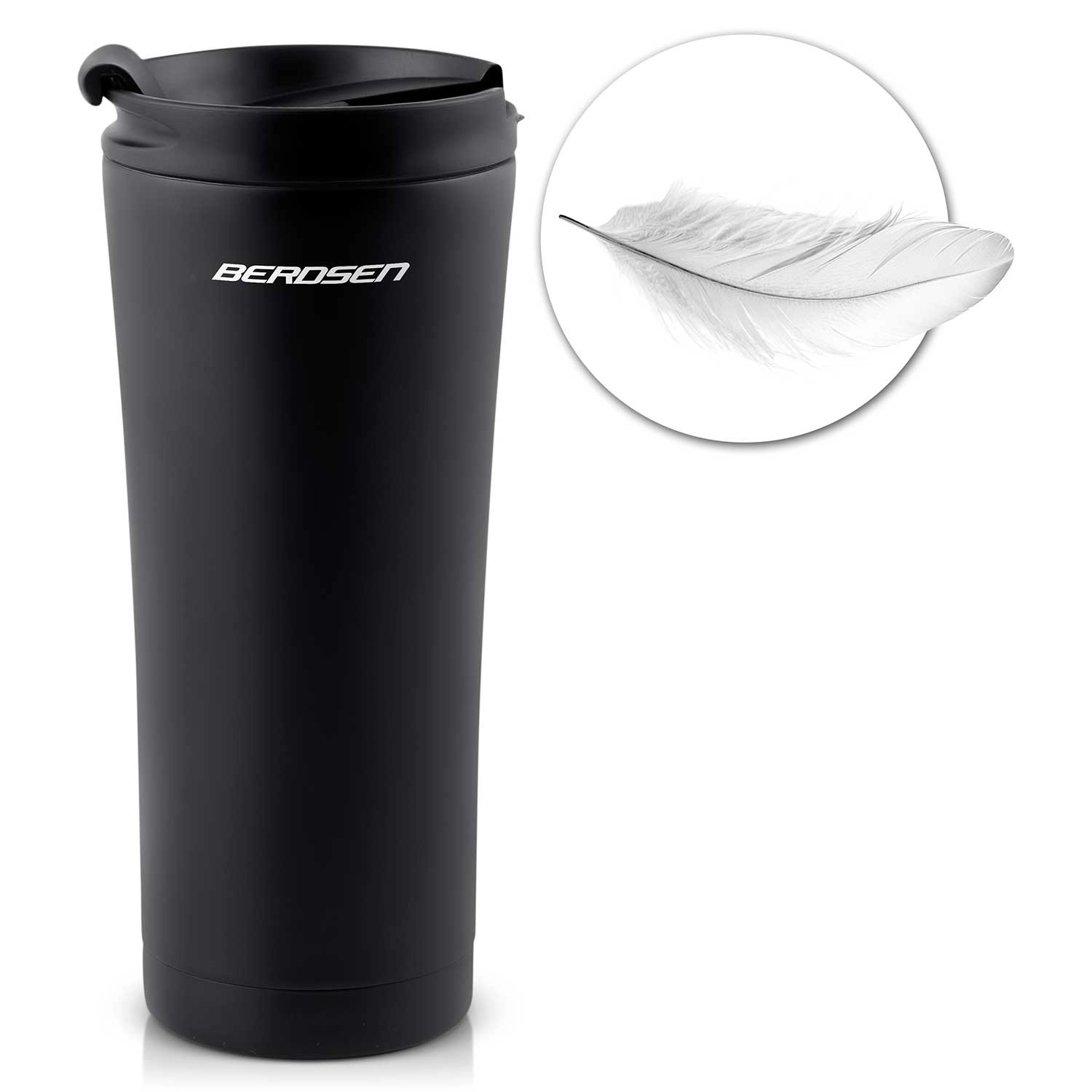 Lahek in trpežen termo lonček BERDSEN 470 ml iz nerjavnega jekla ohranja pijače vroče do 12 ur in hladne do 24 ur. Ima dvojno stensko vakuumsko izolacijo, tesnilni pokrov z varovalom proti razlitju in ergonomsko obliko, ki odlično sede v roko in v avtomobilski držalnik. Idealen za potovanja, šport in pisarno.