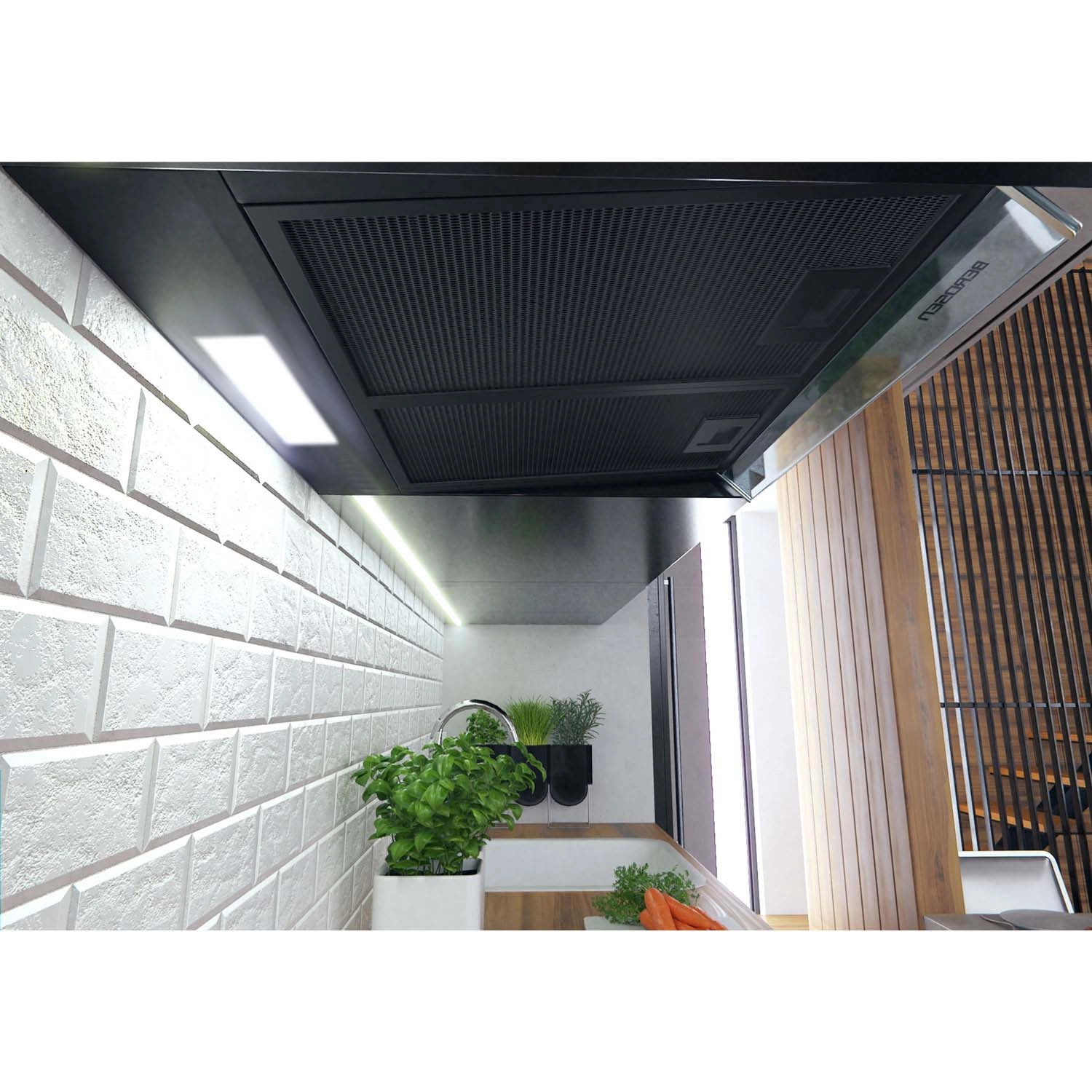 Nizek profil in črna nerjavna izvedba s steklenim panelom se odlično podata tako k modernim kot klasičnim linijam ter varčujeta s prostorom pod omarico.