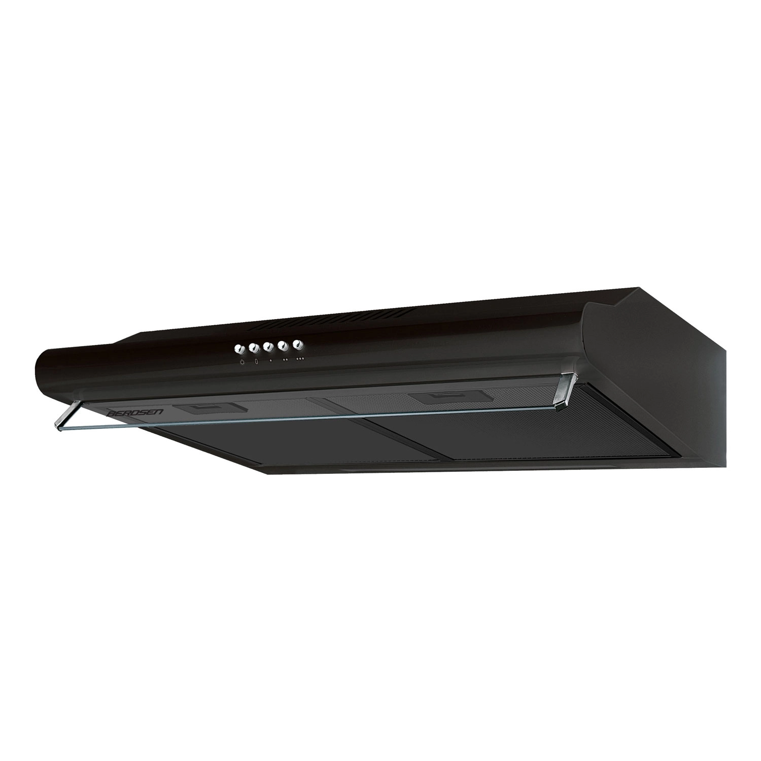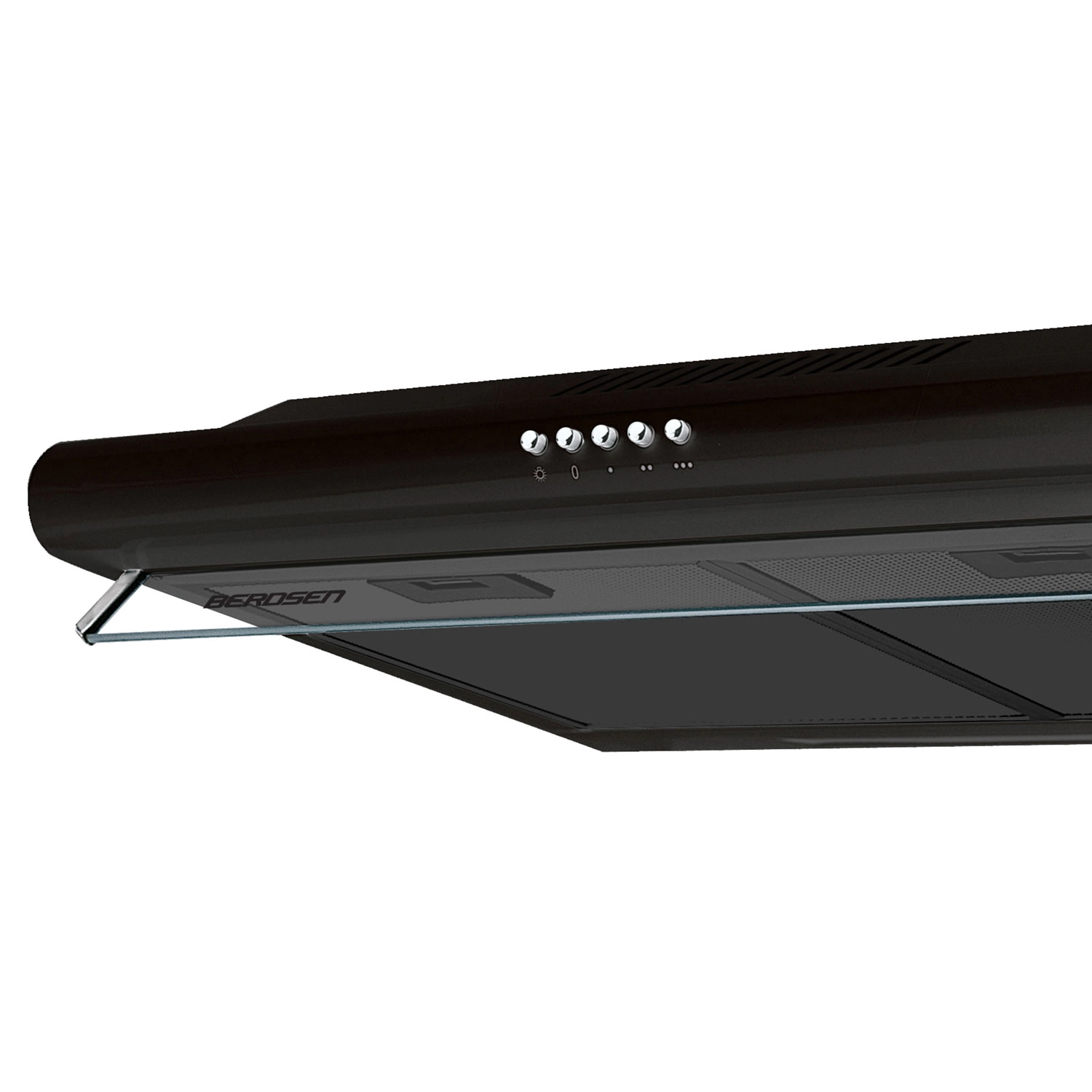 Elegantna kuhinjska napa BERDSEN 60 cm v črni izvedbi iz nerjavnega jekla učinkovito zajema hlape in vonjave nad kuhalno ploščo. Zaradi vitke konstrukcije je primerna za vgradnjo pod omarico ali za montažo neposredno na steno. Stekleni sprednji panel poudarja moderen videz, vgrajena LED osvetlitev zagotavlja jasen pregled nad kuhanjem, 5-slojni aluminijasti filter pa zanesljivo zadrži maščobo.