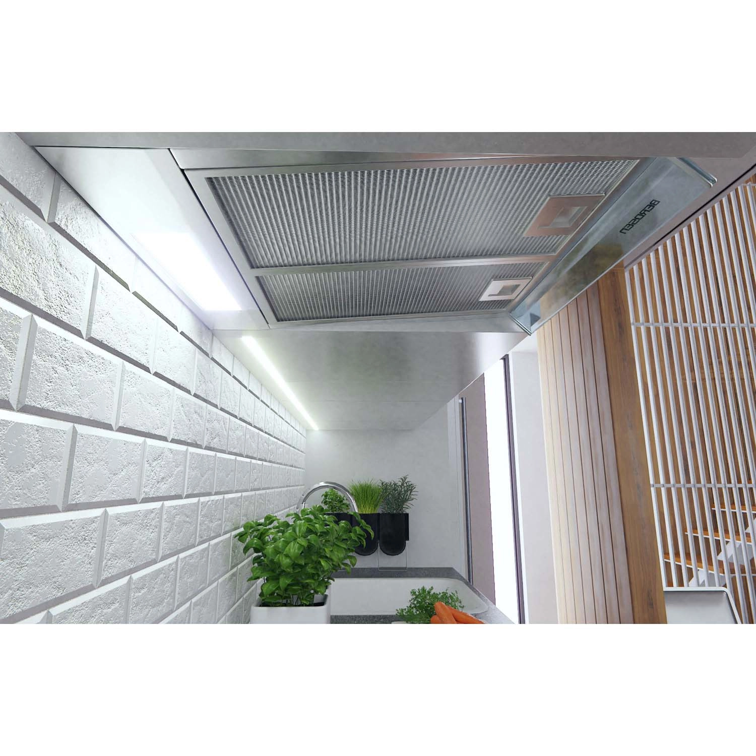 Maksimalna zmogljivost 205 m³/h s 3 stopnjami hitrosti zanesljivo obvlada vsakodnevno kuhanje. Delovanje kot odvod prek Ø 12 cm ali recirkulacija z oglenim filtrom BERDSEN TIP‑A.