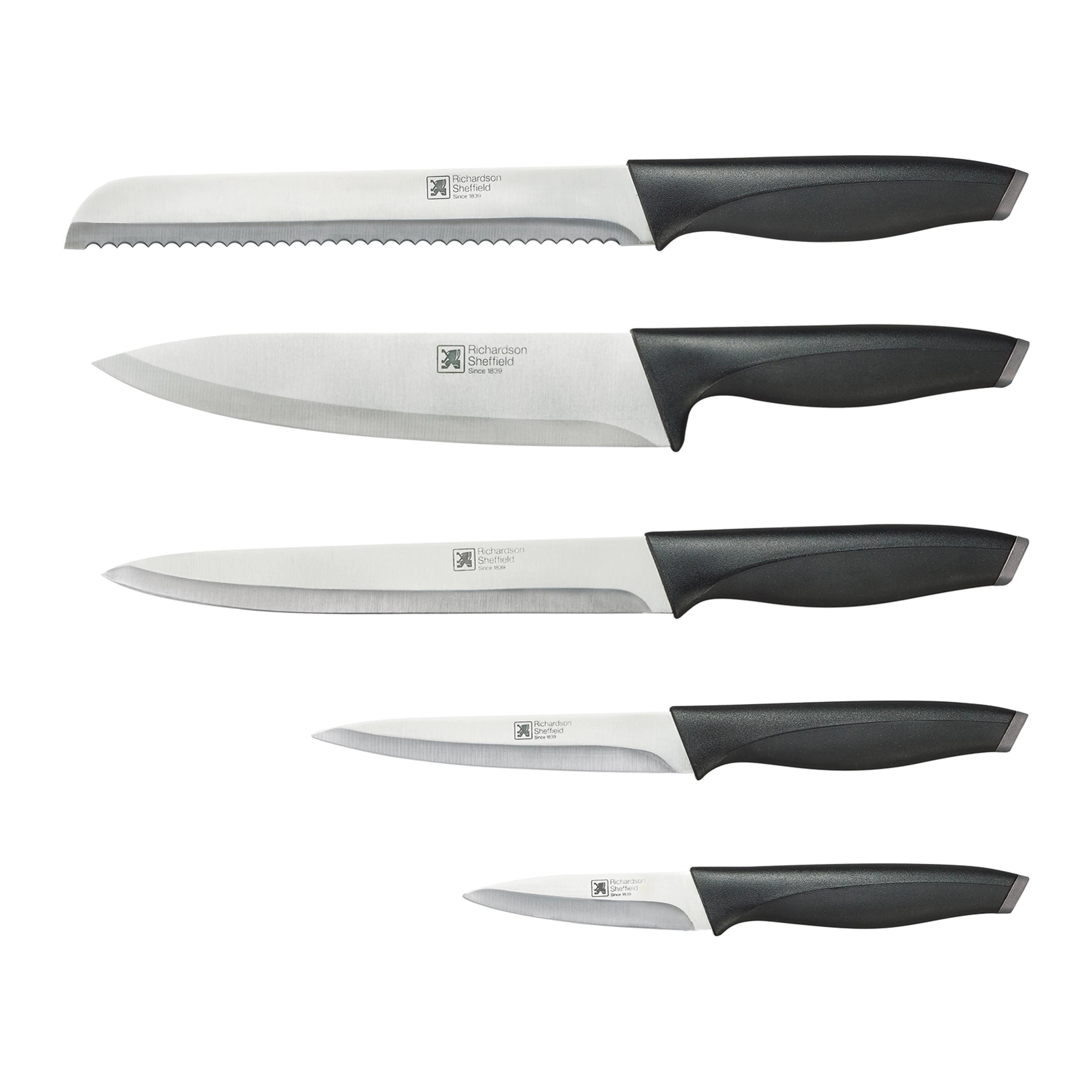 Elegantni komplet kuhinjskih nožev v masivnem lesenem bloku prinaša vse, kar v kuhinji potrebujete – od lupljenja do rezanja kruha. Noži RICHARDSON SHEFFIELD ADVANTAGE imajo obojestransko brušena rezila za udobno in natančno rezanje, praktičen lesen blok pa prihrani prostor na delovni površini. Primerno za vsakodnevno uporabo v modernem gospodinjstvu.