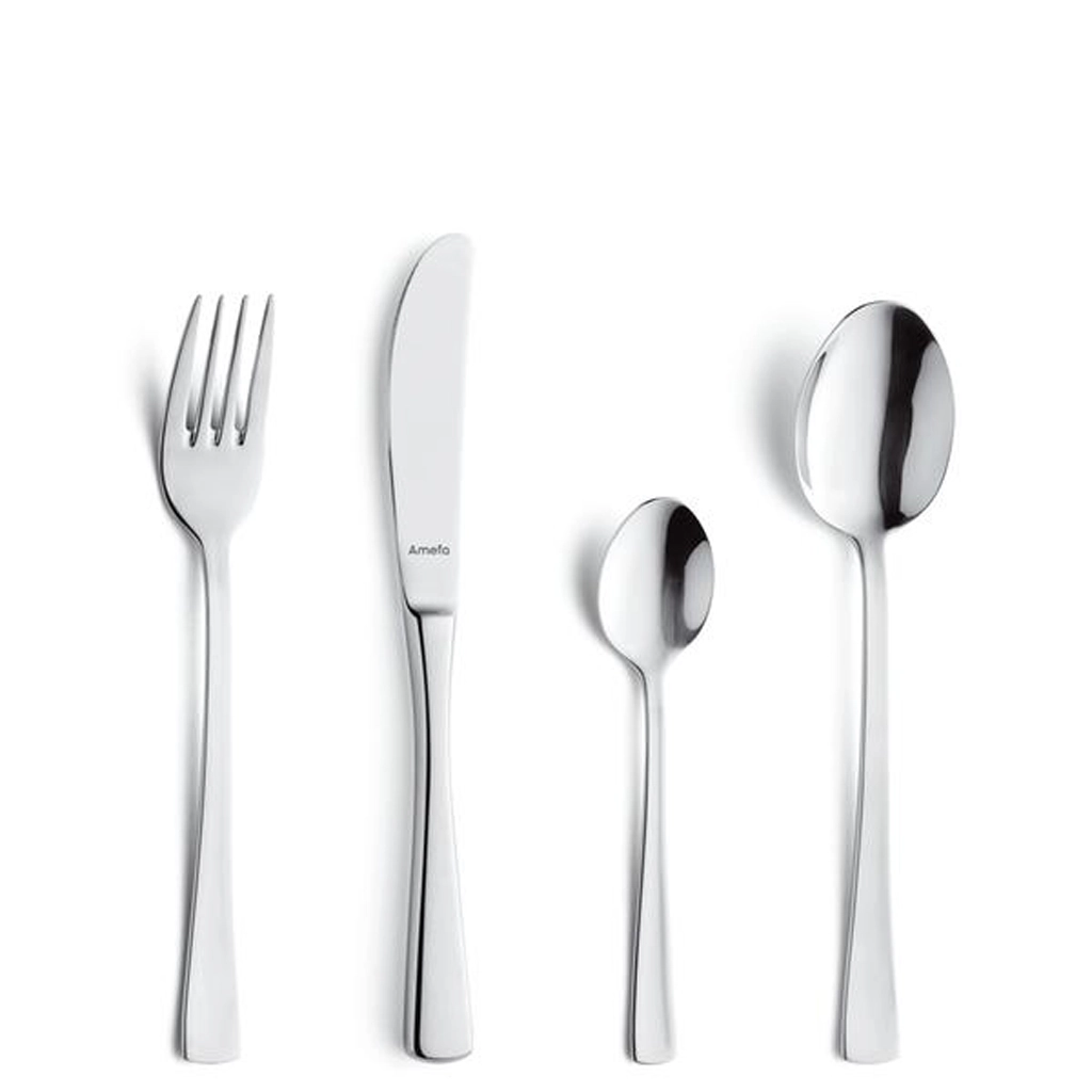 Set jedilnega pribora Amefa Neptune, 24 kosov, je idealna izbira za vsakodnevno uporabo in slavnostne priložnosti. Minimalistična oblika z visokim sijajem poudari videz vsake mize, medtem ko kakovostno nerjaveče jeklo 18/0 zagotavlja odpornost in dolgo življenjsko dobo.
