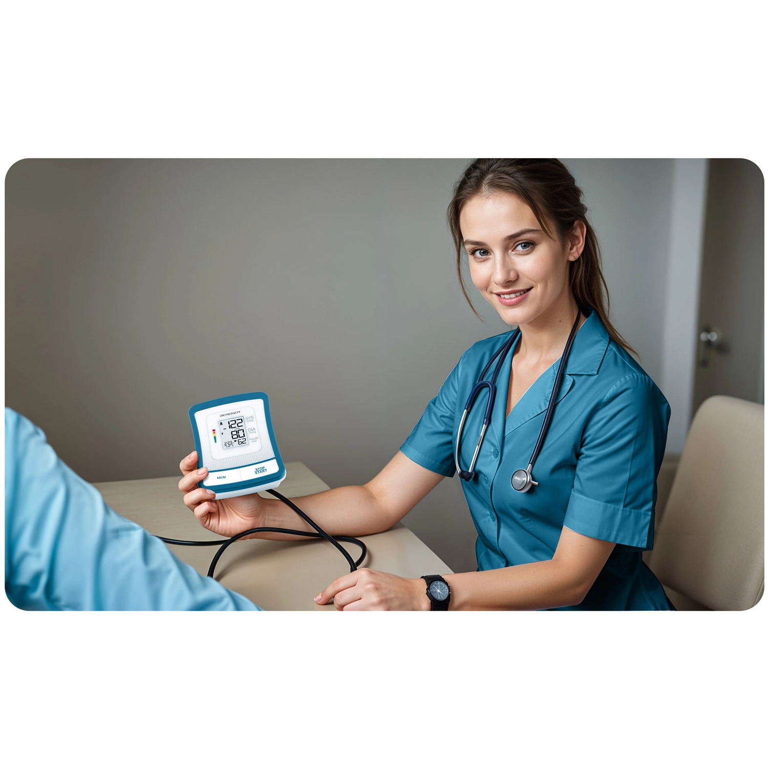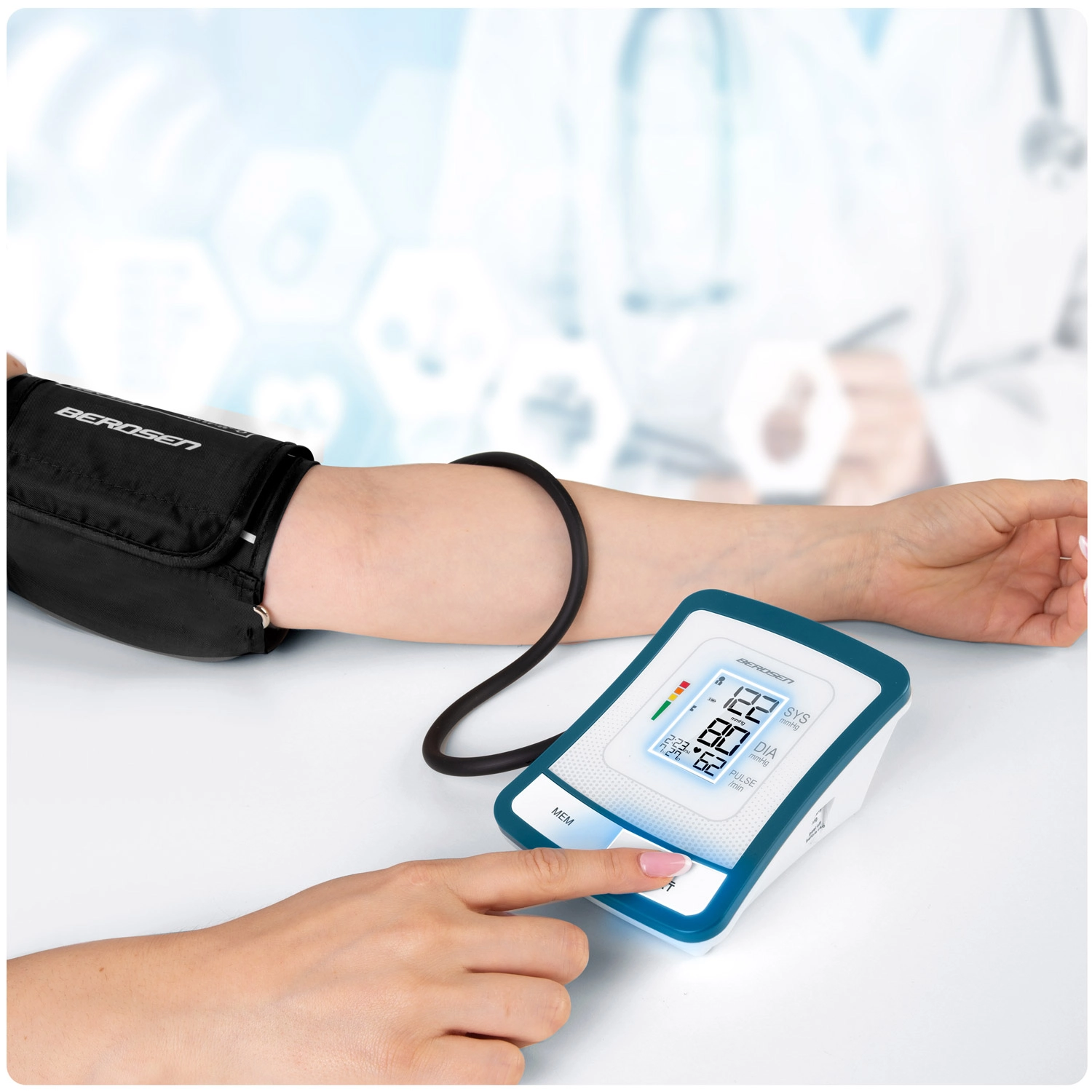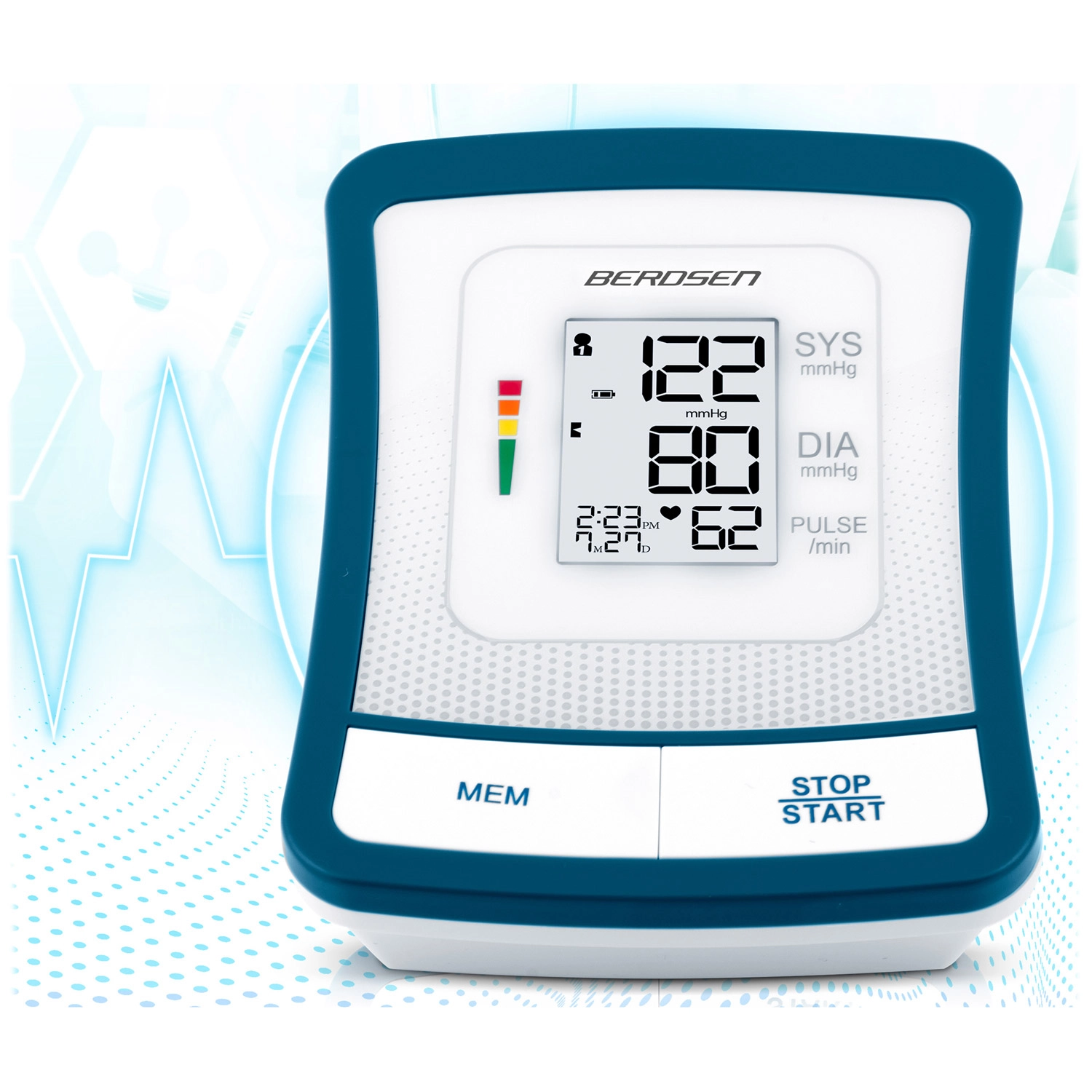 Digitalni naramenski merilnik krvnega tlaka BERDSEN BD-120 prinaša hitro in natančno merjenje krvnega tlaka in pulza v udobju doma. Ponuja pomnilnik do 120 meritev, zaznavanje nepravilnega srčnega ritma (IHB), preprosto upravljanje z enim gumbom in velik, lahko berljiv LCD-zaslon z barvno lestvico klasifikacije tlaka. V kompletu so tudi manšeta 22–42 cm, etui in 4 baterije AA za takojšnjo uporabo.
