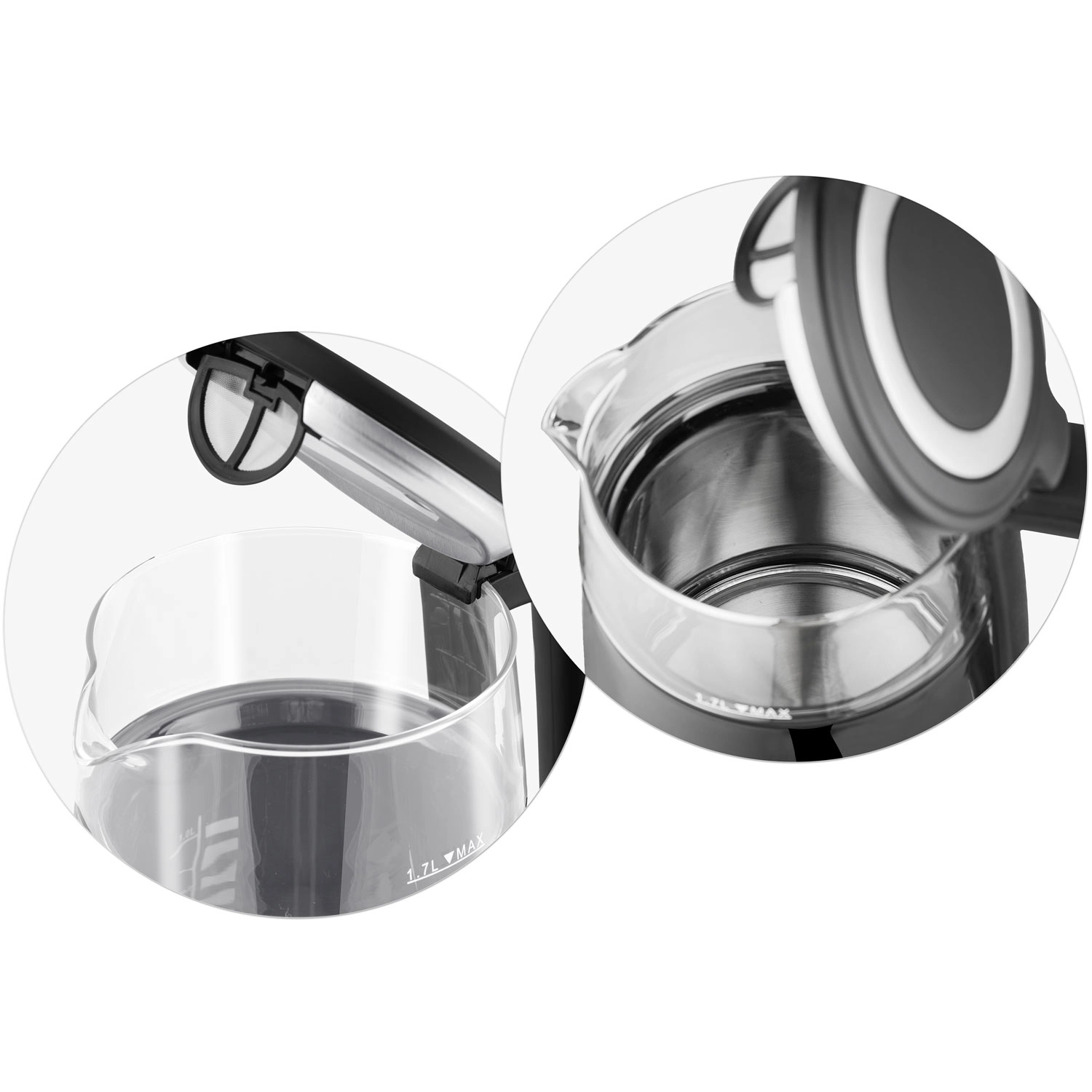 Moderen električni grelnik vode 1,7 l z nazaslonskim (touch) panelom, natančno nastavitvijo temperature (70/80/90/100 °C) in funkcijo ohranjanja toplote do 2 uri. Kombinacija nerjavnega jekla SUS 304 in kaljenega stekla zagotavlja čist okus vode, dolgo življenjsko dobo in eleganten videz. Izolirana konstrukcija CoolTouch ščiti pred opeklinami in omogoča varno prenašanje.