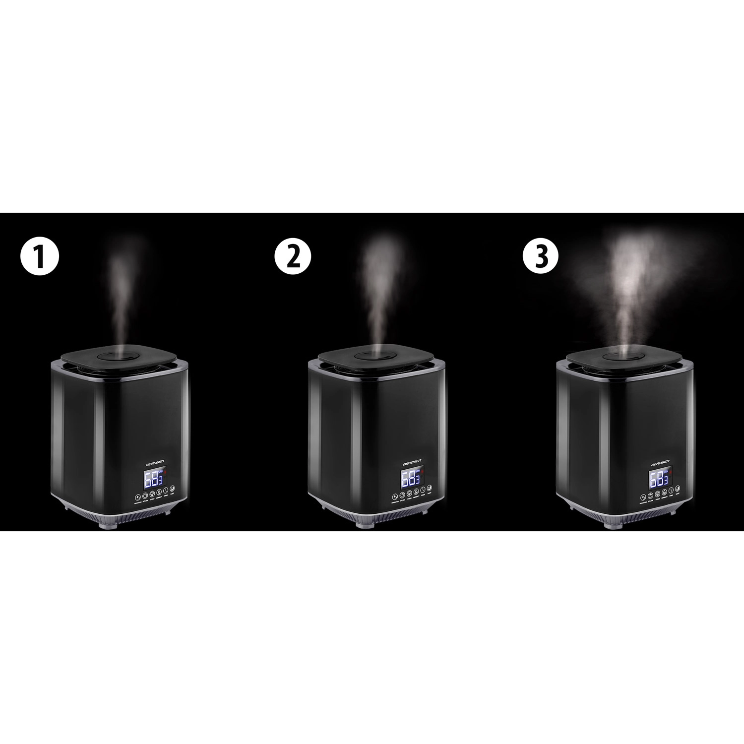 Vgrajena higrostat in higrometer natančno nadzirata vlažnost. Ko je cilj dosežen, vlažilnik preide v pripravljenostni način, ob padcu vlažnosti pa samodejno nadaljuje z delovanjem.
