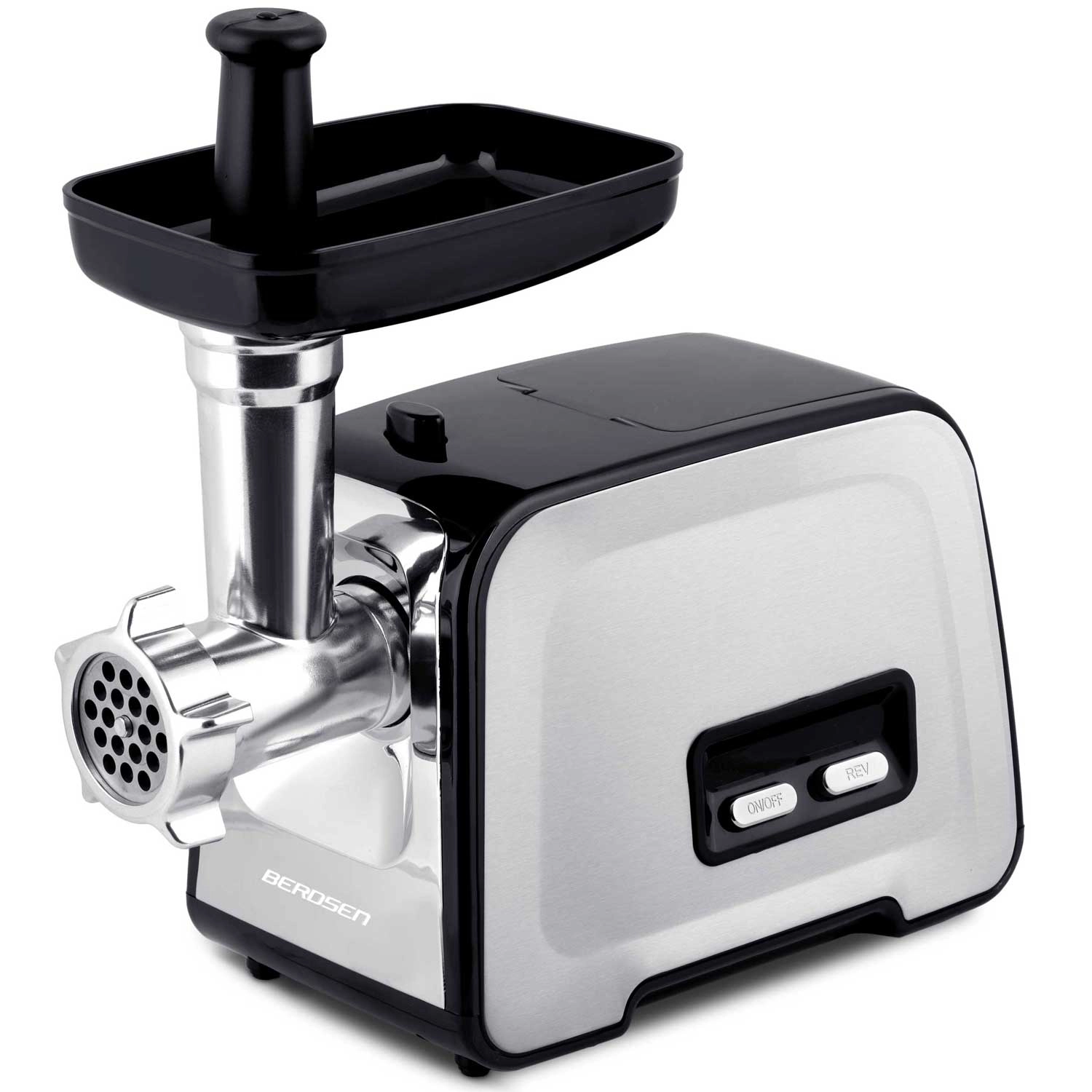 Zmogel električni mlin za meso BERDSEN ponuja največjo vršno moč 1200 W, vzvratni hod za sprostitev sestavin in kovinski polž z vzdržljivimi zobniki za dolgo življenjsko dobo. Z 3 zamenljivimi ploščami (3/5/7 mm) pripravite fino ali grobo mletje, domače klobase in kebbe. Enostavno upravljanje, varen obrat (LFGB, brez BPA) ter priročen prostor za shranjevanje dodatkov prihranijo prostor in čas.