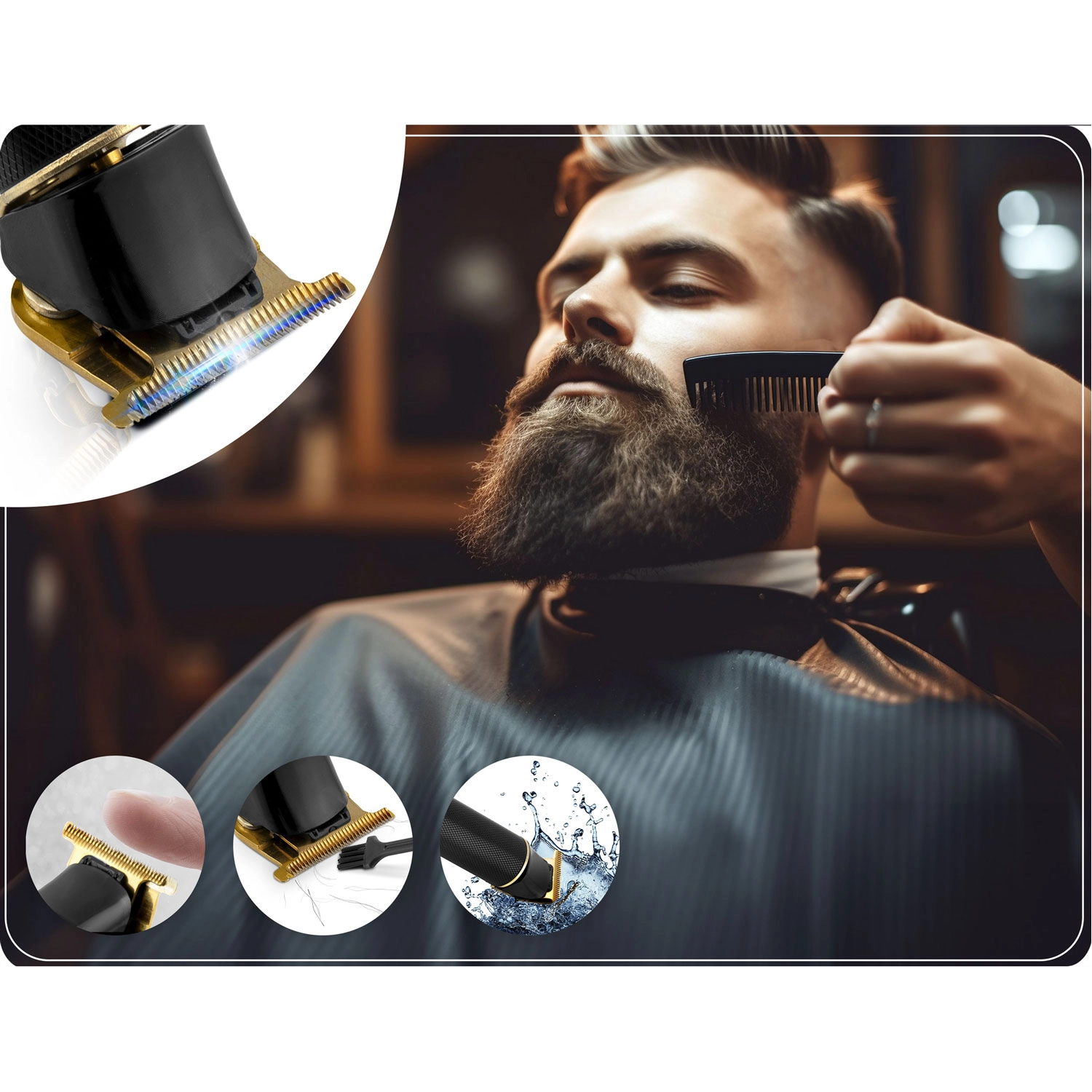 Vzdržljivo nerjaveče rezilo zagotavlja gladko striženje brez cukanja. Idealno za začrtanje linij, kontur brade in kreativne vzorce.
