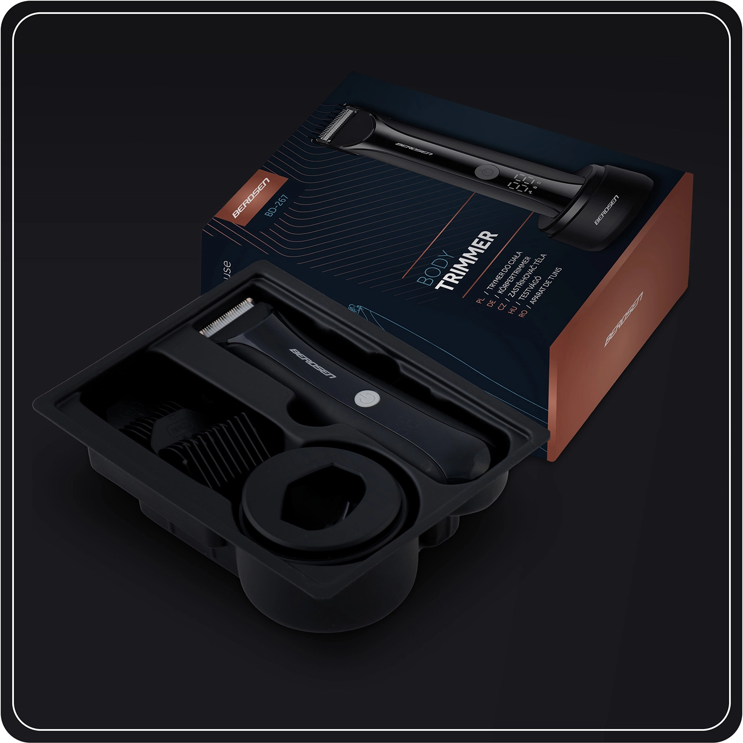 Univerzalni prirezovalnik BERDSEN Barber Master je idealen za vsakodnevno urejanje las in brade. Ponuja ostra jeklena rezila za natančen prirez, LCD-zaslon s prikazom baterije in funkcijo zaklepa, zmogljiv motor za tekoče delovanje ter do 90 minut brezžičnega delovanja. V kompletu so 4 nastavljivi glavnični nastavki 3–12 mm, polnilno stojalo, USB‑C kabel in čistilna krtačka.