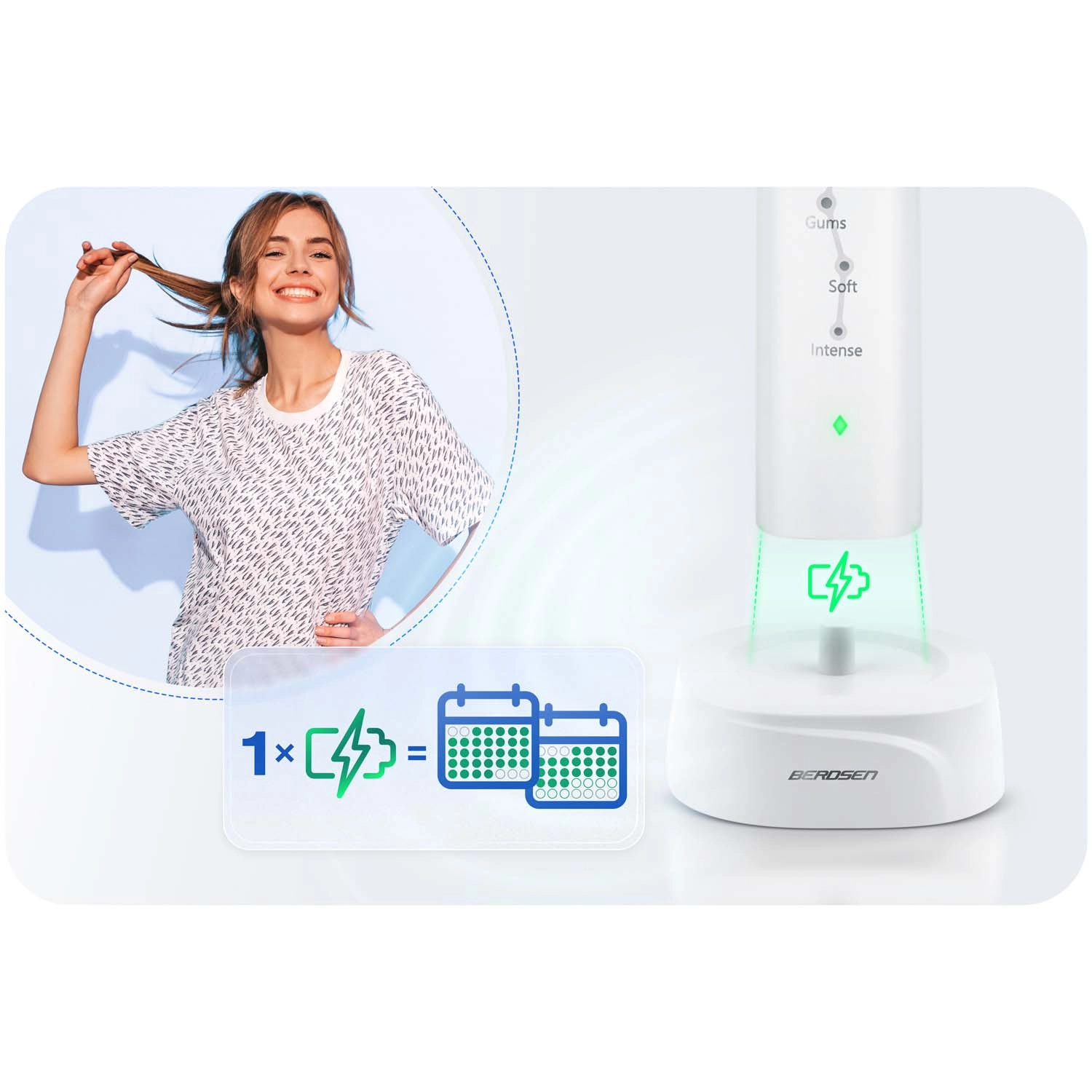 Berdsen Galaxy uporablja napredno sonično tehnologijo, ki nežno, a izjemno učinkovito razgrajuje zobne obloge in doseže tudi težko dostopna mesta. Inovativna glava z mehkimi ščetinami sledi obliki zoba, zadnja stran pa služi za čiščenje jezika za svež dah. Rezultat je beljejši nasmeh v nekaj tednih in do 6× učinkovitejše odstranjevanje oblog v primerjavi z običajnimi ročnimi ščetkami.