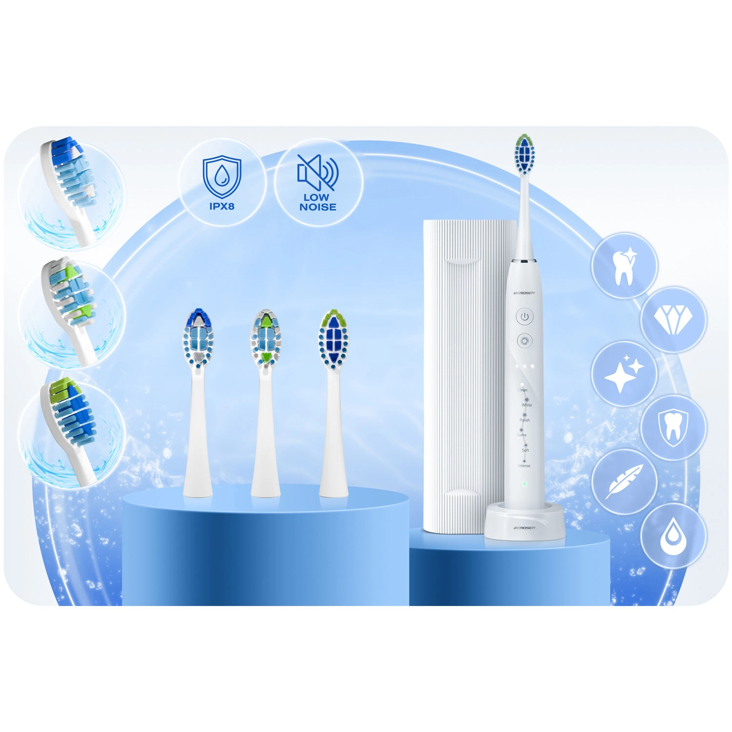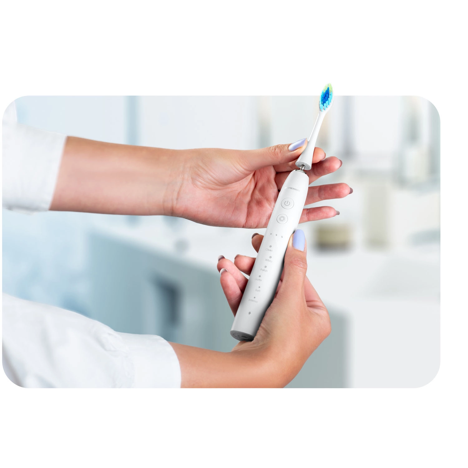 Izberite med 6 načini in 3 intenzivnostmi (skupaj 18 kombinacij) za nego natančno po vaših potrebah – od vsakodnevnega čiščenja do nežne nege občutljivih dlesni. Močna baterija kapacitete 800 mAh zdrži približno 50 dni z enim polnjenjem, z indukcijsko USB-polnilno postajo pa je polnjenje preprosto in elegantno. Zahvaljujoč IPX8 odpornosti je ščetka primerna tudi za pod prho, potovalna etui pa jo naredi za idealno spremljevalko na dopustu.