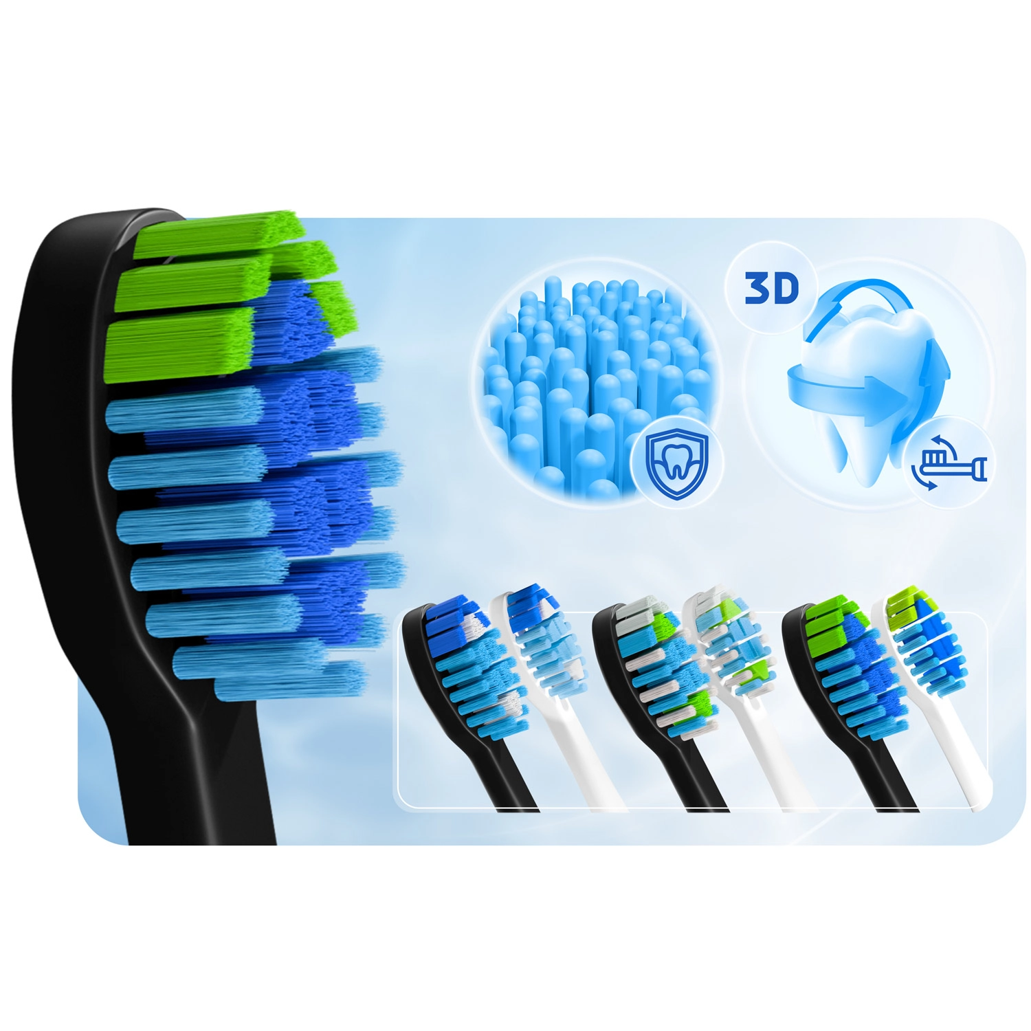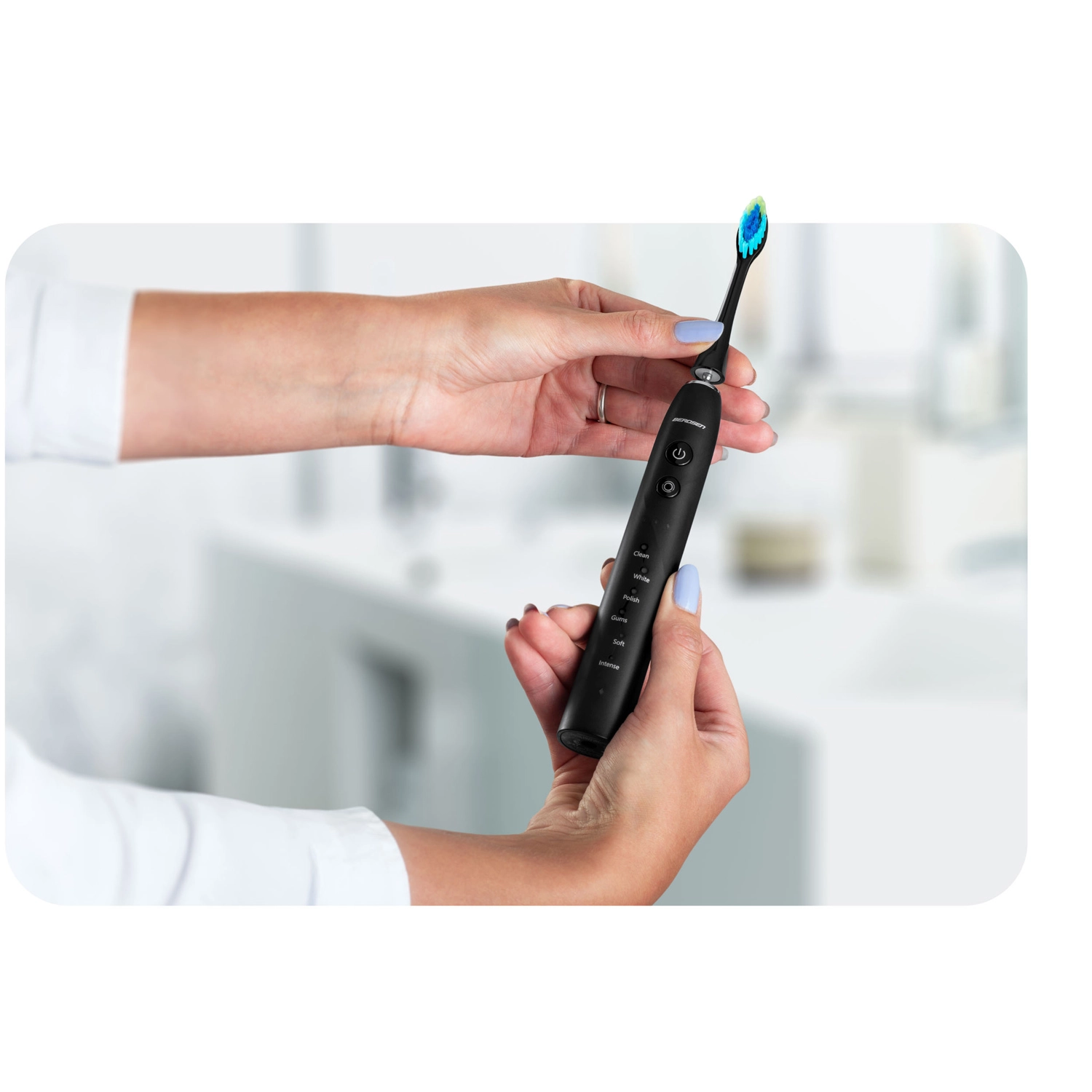 Pridobite do 18 kombinacij čiščenja zahvaljujoč 6 načinom (CLEAN, WHITE, POLISH, GUMS, SOFT, INTENSE) in 3 stopnjam intenzivnosti. Zmogljiv motor zagotavlja 40.000 vibracij/min, baterija s kapaciteto 800 mAh pa omogoča do 50 dni delovanja z enim polnjenjem. Na voljo je 2-minutni časovnik s 30-sekundnim intervalom za menjavo kvadranta in odpornost IPX8 za varno uporabo v kopalnici.