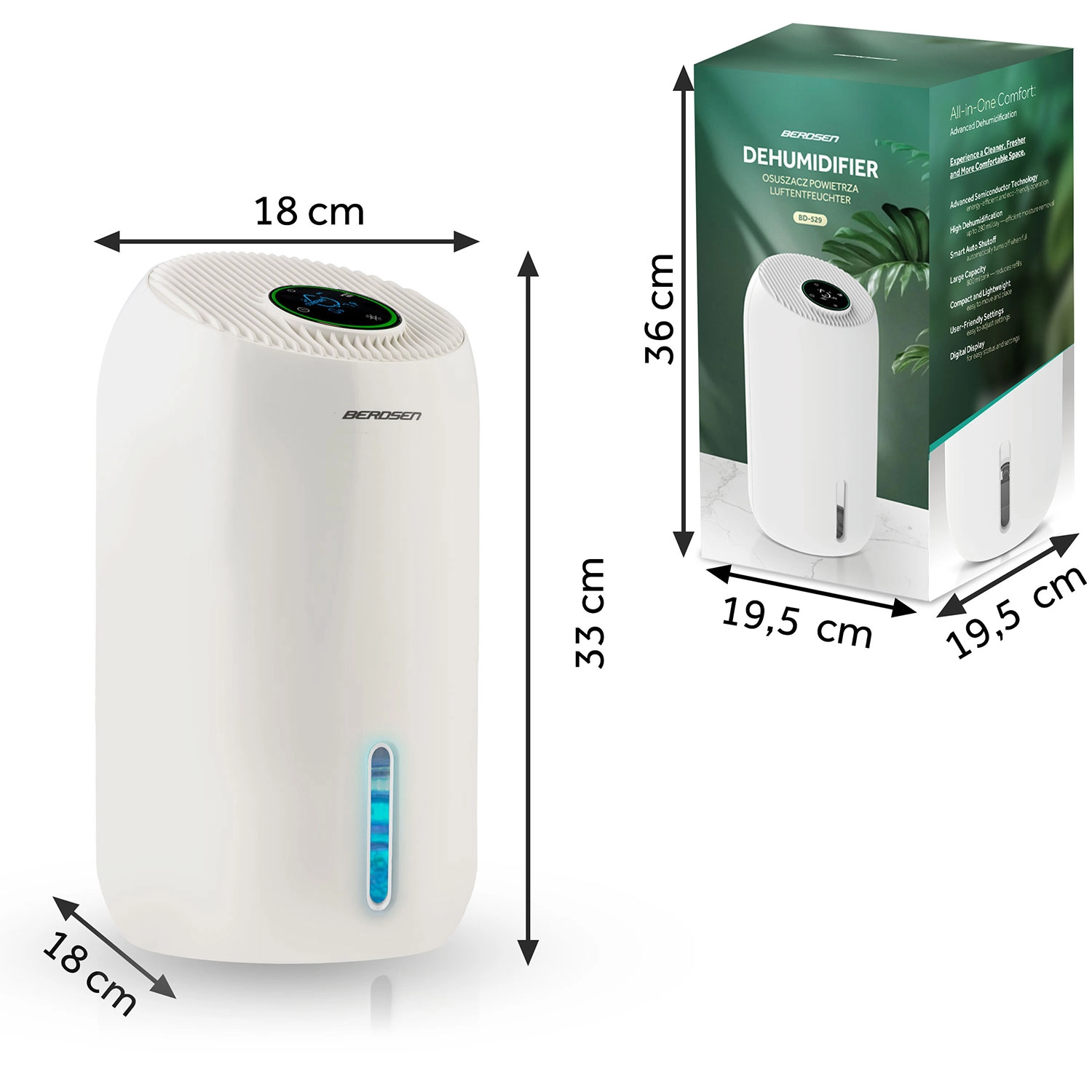 Razvlaževalnik BERDSEN BD-529 je idealna izbira za kopalnice, pralnice, spalnice ali manjše prostore, kjer se nabira vlaga. Učinkovito preprečuje nastanek plesni in zatohlih vonjav, pomaga pri alergijah ter izboljšuje kakovost zraka v notranjih prostorih. Zaradi zelo tihega delovanja in nočnega načina ne moti niti med spanjem.