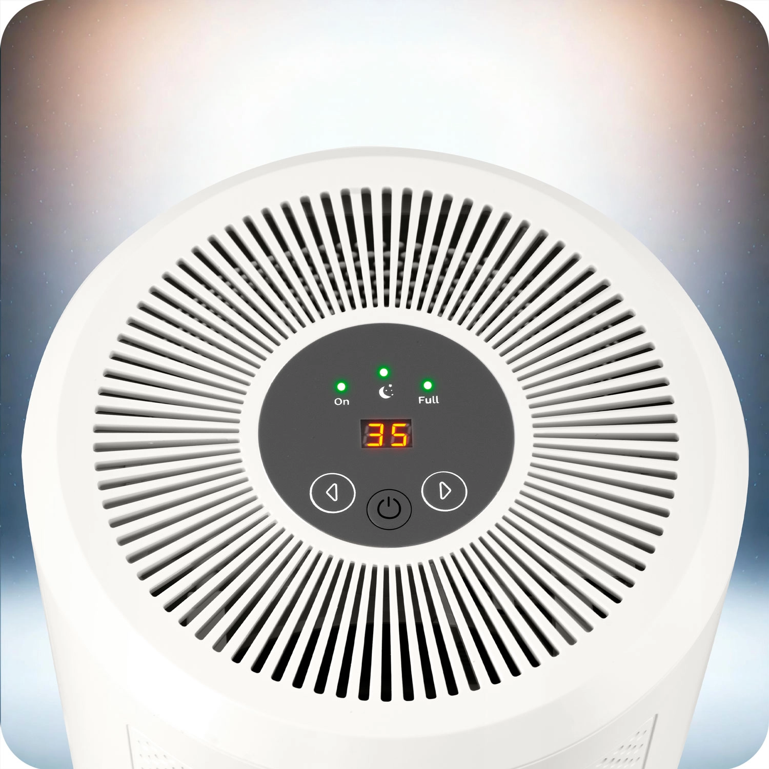 Nočni način zatemni zaslon za nemoten spanec, tipalo nivoja vode z opozorilom na zaslonu pa preprečuje prelivanje. Velik 2-litrski rezervoar podaljša intervale praznjenja, kompaktna zasnova pa se poda vsakemu interierju. Začnite doma dihati bolj zdrav zrak in skrajšajte čas sušenja perila.
