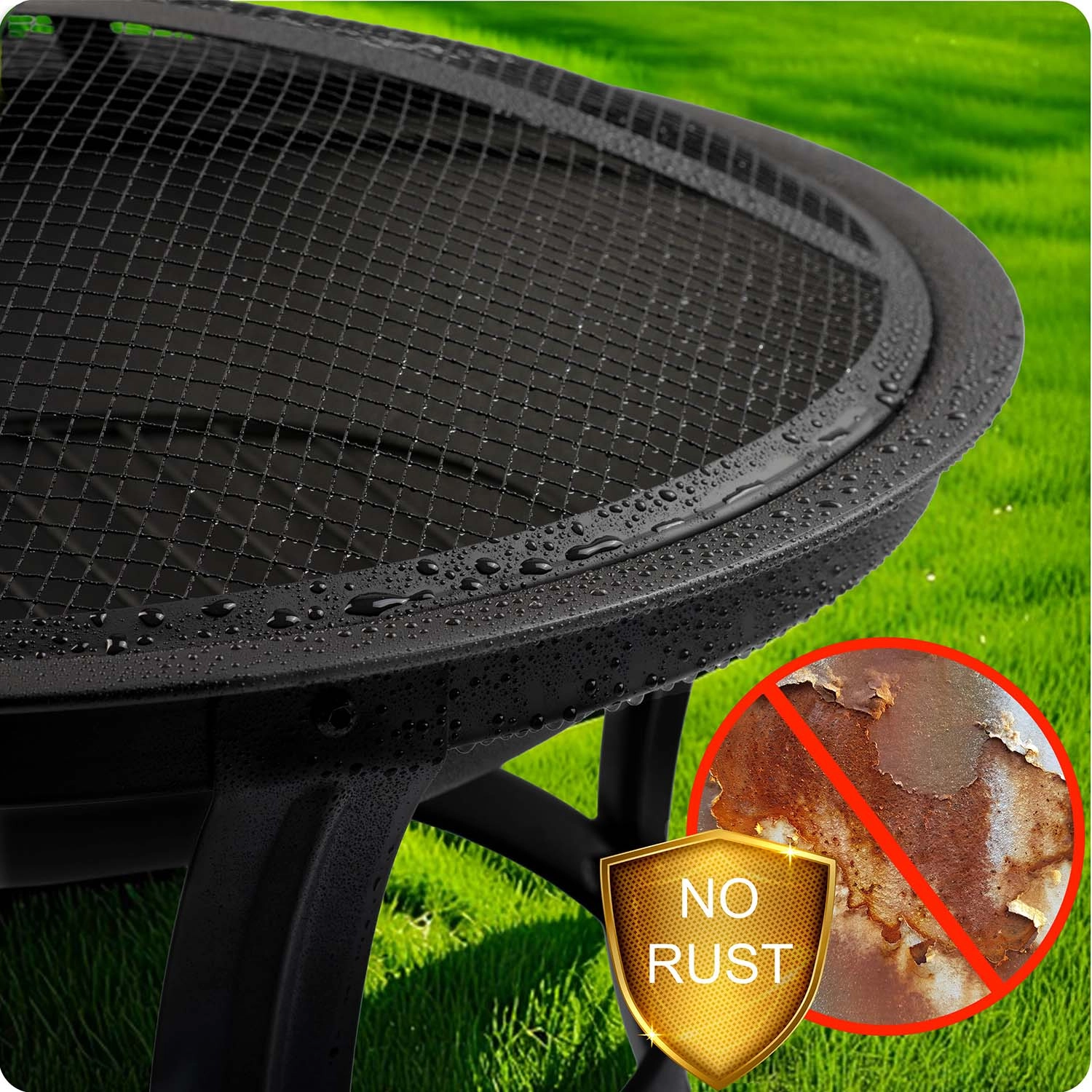 Čvrsto jeklo s praškastim premazom je odporno na vremenske vplive, UV-sevanje in mraz. Robustne noge in obročna ojačitev zagotavljajo zanesljivo uporabo.
