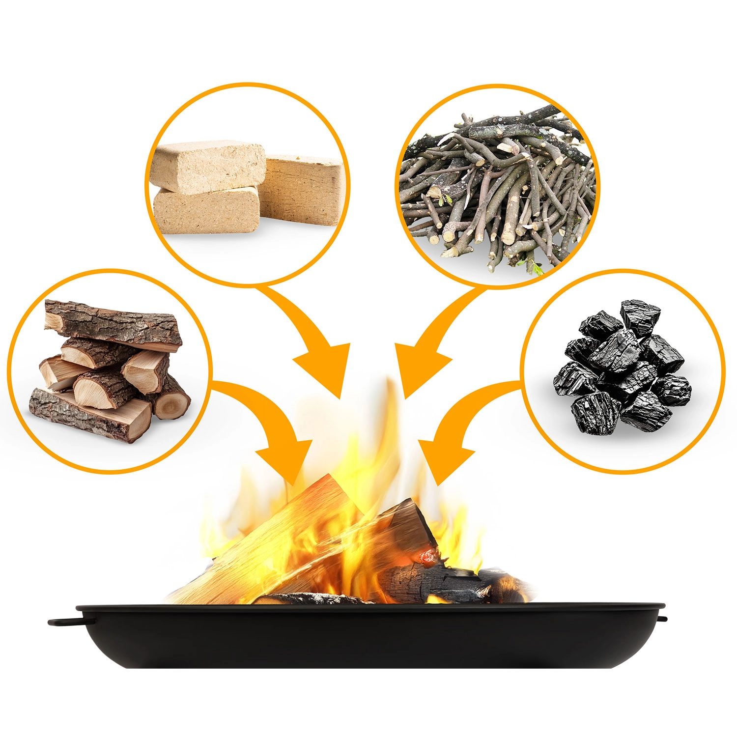 - Univerzalno gorivo: polena, lesni briketi, veje ali oglje