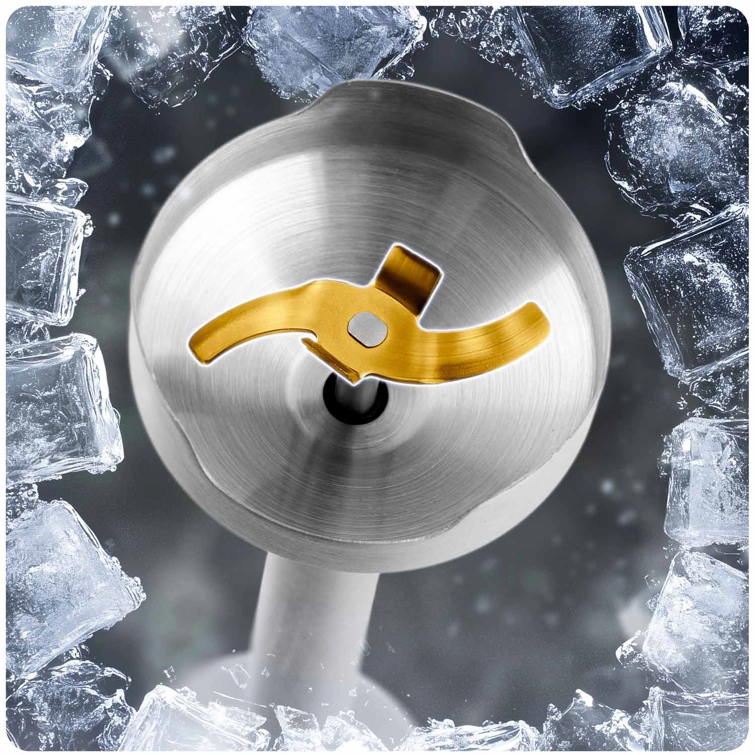 Izjemno trpežni titanovi rezili zlahka opravijo z oreščki, ledom in vlaknasto zelenjavo. Gladka površina omogoča preprosto čiščenje in higieno.