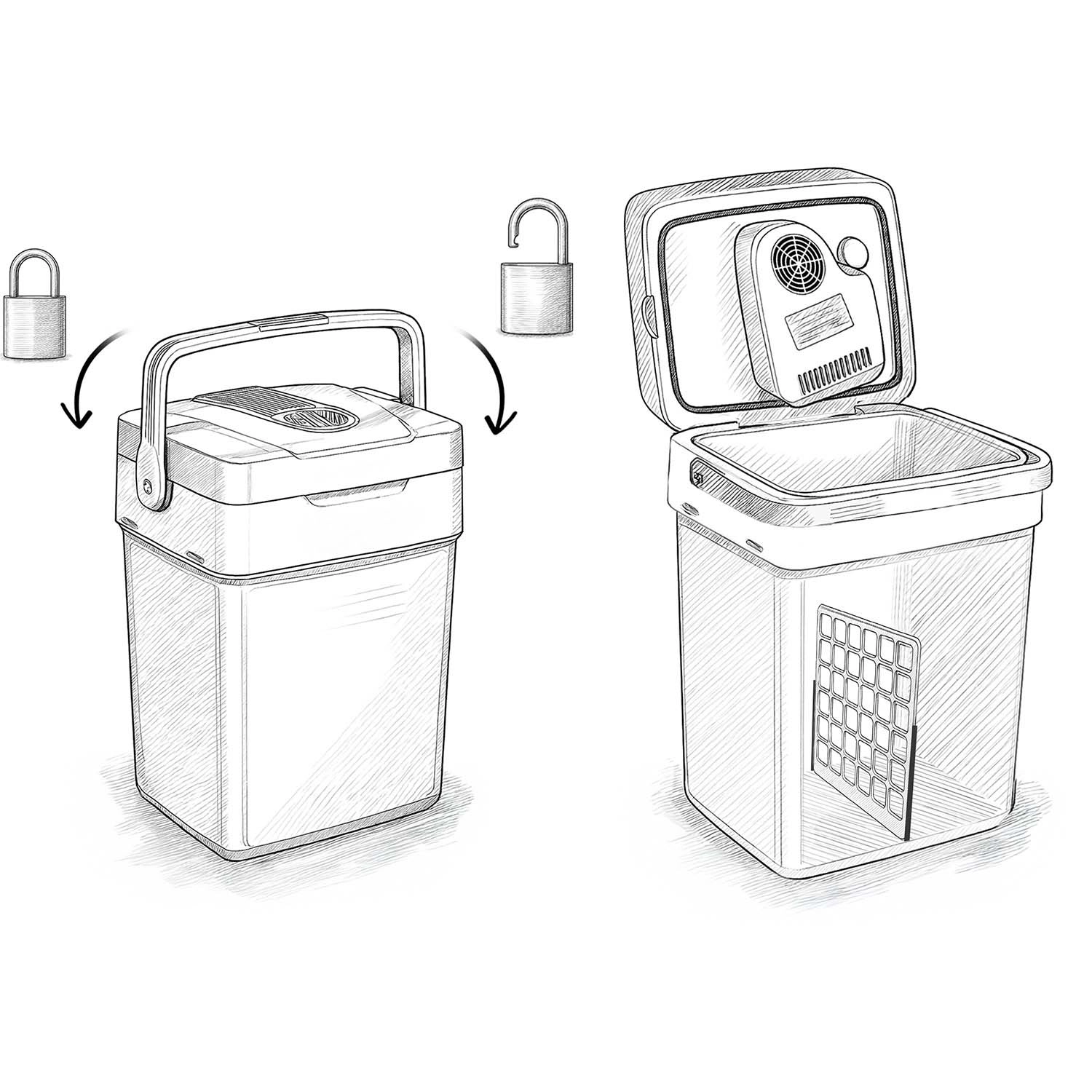 Hladi do 18 °C pod temperaturo okolice, v načinu gretja pa ohranja jedi do 65 °C. Praktičen zložljiv ročaj služi tudi kot opora pokrova, zaklep ob navpičnem položaju ročaja preprečuje samodejno odpiranje med prenašanjem, notranja pregrada pa pomaga pri organizaciji vsebine. V ECO načinu navduši izjemno tiho delovanje (26 dB), zato ne moti niti ponoči.