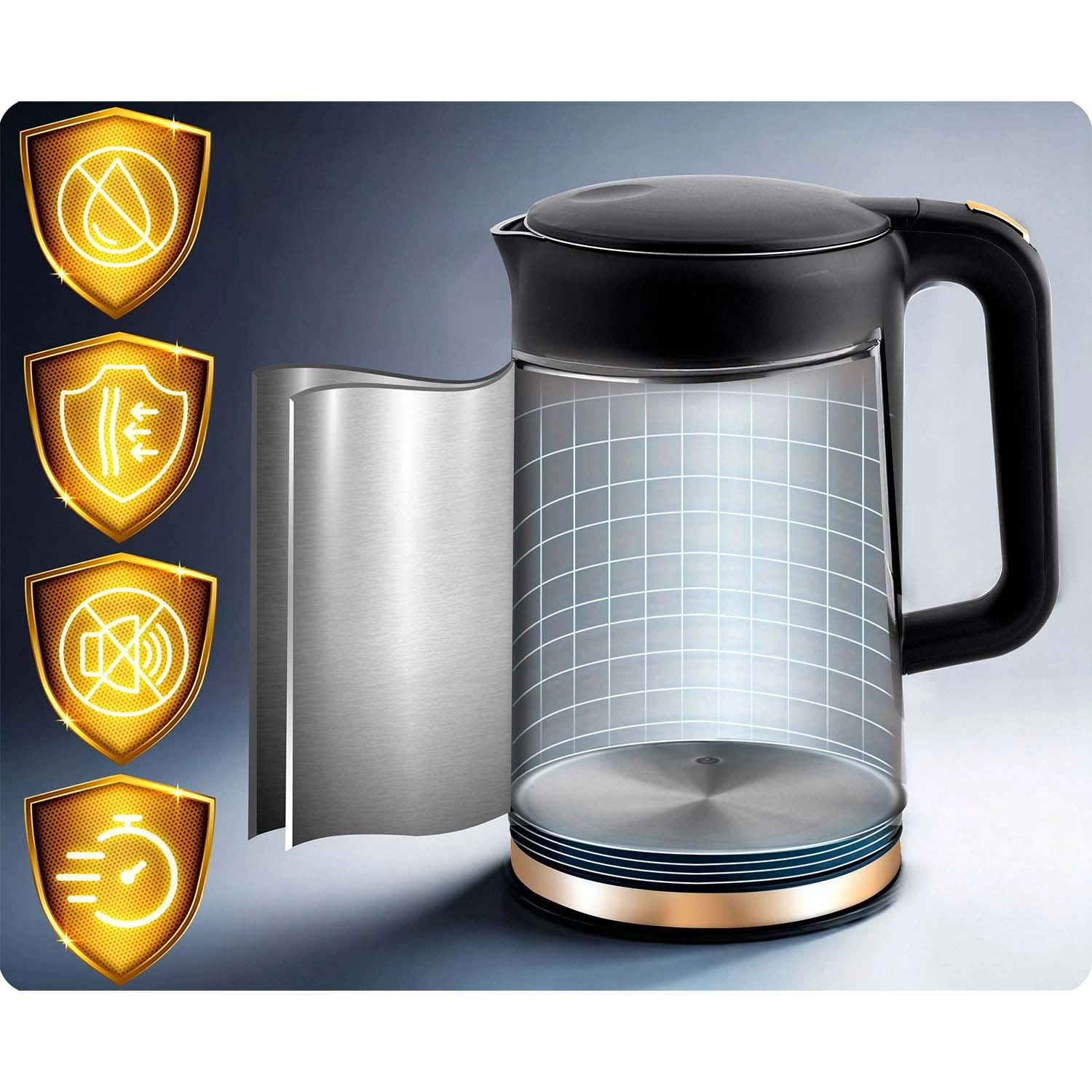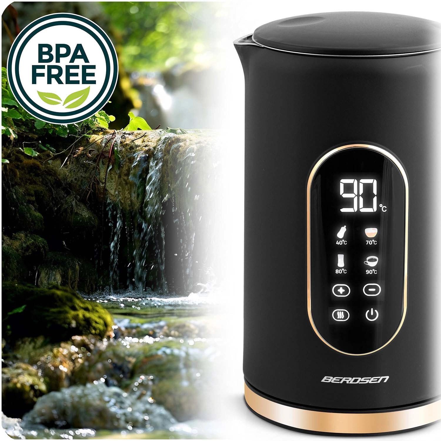 Električni grelnik vode 1,7 l črno‑zlat z zaslonom na dotik BERDSEN