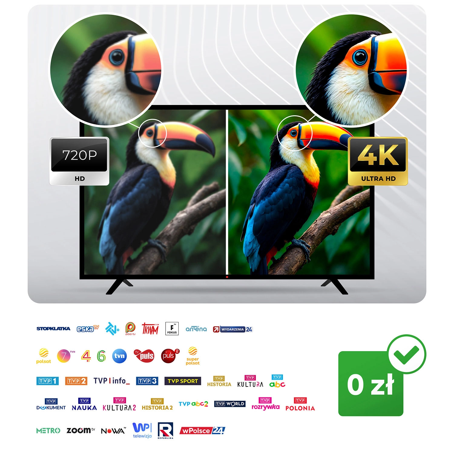 Antena podpira DVB-T in DVB-T2, zato dobite dostop do desetkov brezplačnih kanalov brez mesečnih stroškov – v Full HD in Ultra HD 4K. Praktična zasnova z možnostjo zasuka VHF dipola olajša prilagoditev na horizontalno ali vertikalno polarizacijo. Namestitev je hitra in ne zahteva posebnega orodja.