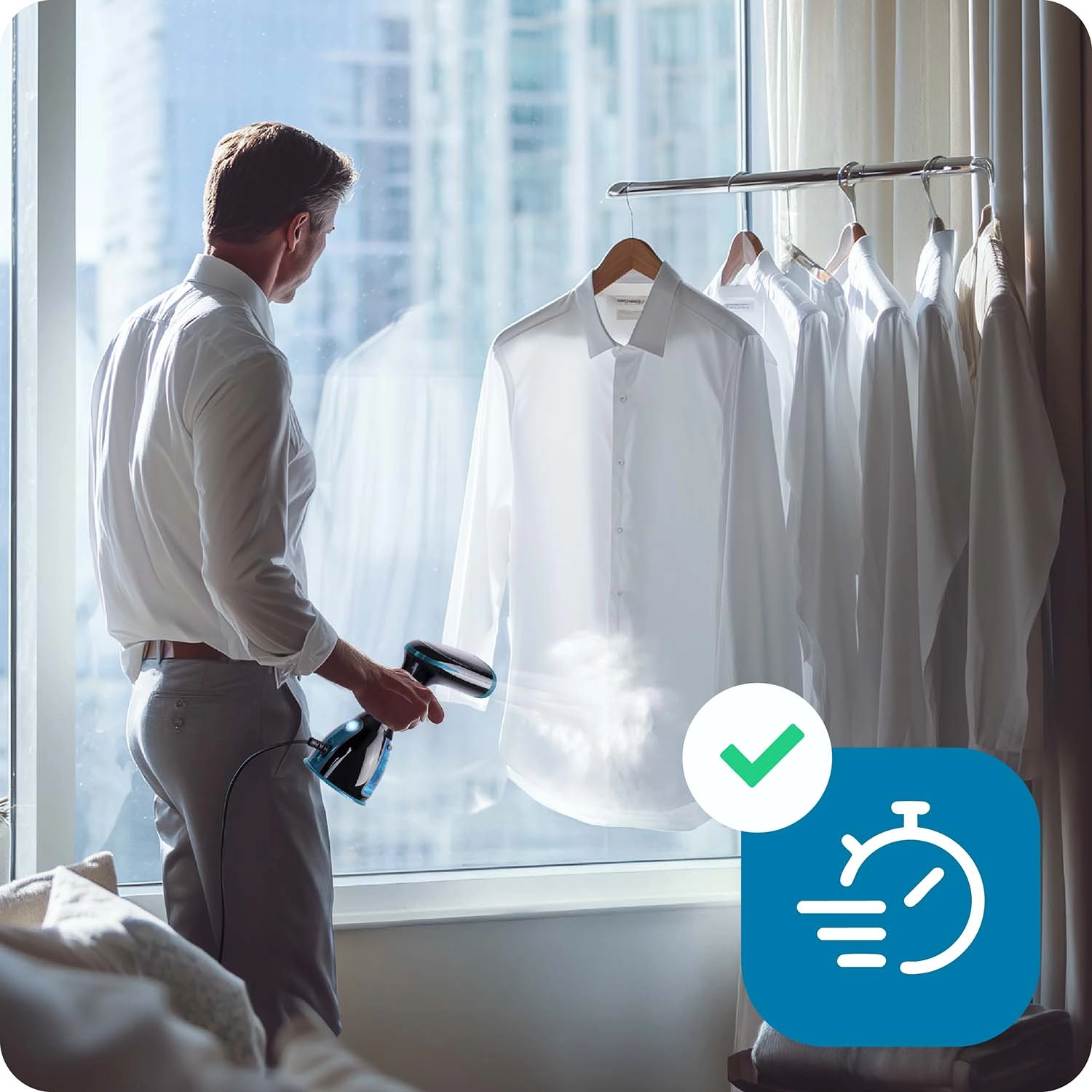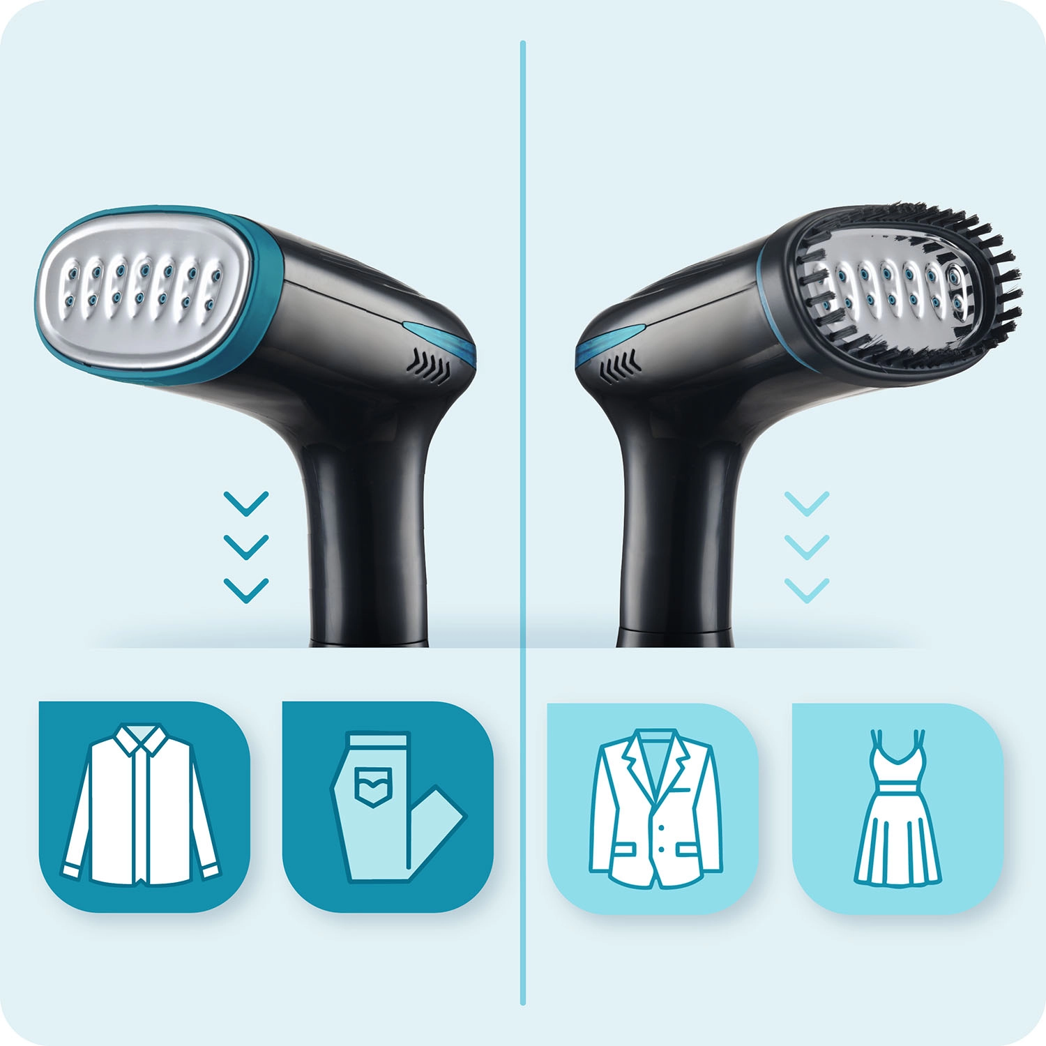 Visokotemperaturna para prispeva k higienskemu osveževanju tekstila – brez kemije in odvečne vlage. Primeren je doma in na poti: kompaktno ohišje se prilega tudi manjšemu kovčku. S krtačnim nastavkom boste hkrati zgladili in počesali dlačice ter nitke s plaščev ali oblazinjenja.