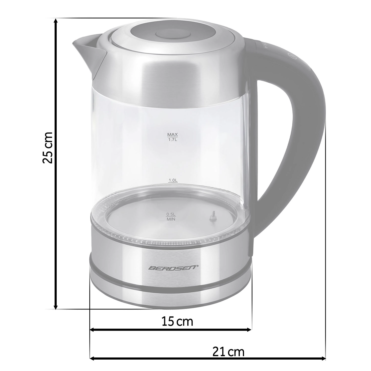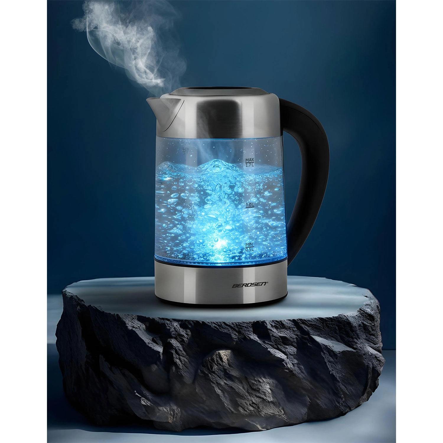 Odkrijte sodoben stekleni grelnik vode BERDSEN s prostornino 1,7 l in močjo 2200 W za hitro in natančno segrevanje vode. Zahvaljujoč načinu upravljanja na dotik, pametnemu merjenju temperature v realnem času in nastavitvi temperature 60–100 °C boste pripravili čaj, kavo in otroške napitke natančno po potrebi. LED osvetlitev signalizira fazo segrevanja, borosilikatno steklo zagotavlja čist okus in vzdržljivost, varnostna zaščita pred delovanjem na suho pa poskrbi za brezskrbno uporabo.