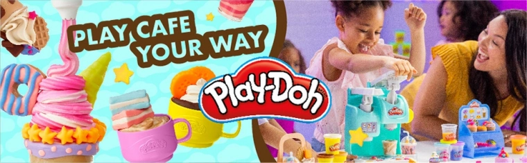 Set Play-Doh Barvita kavarna spremeni otroško sobo v majhno kavarno, polno domišljije. Otroci lahko pripravljajo "kave", čaje, frappeje ali koktajle iz modelirne mase, jih okrasijo s smetano in postrežejo na prosojnem stojalu. Zahvaljujoč bogatim dodatkom ter kalupom za piškote, mafine in krofe je zabava znova in znova zagotovljena.