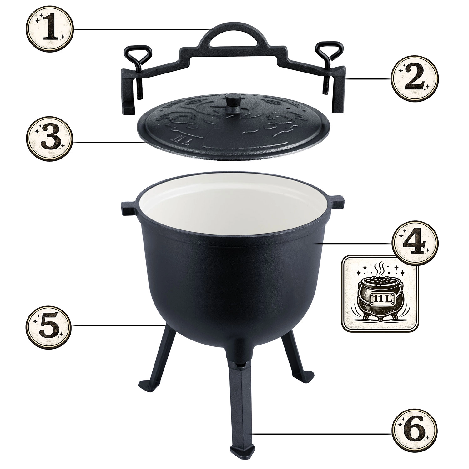 Odstranite noge in kuhajte na plinu ali pustite kotliček na nogah oziroma ga obesite nad kuriščem. En sam pripomoček za kampiranje, vrt in domače kuharske izzive.