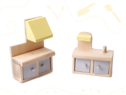 Majhna lesena kuhinjica z realističnimi detajli je popoln prostor za pripravo domišljijskih jedi in zabavo vaših otrok.