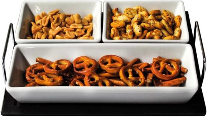 Ta vsestranski servirni set se poda v vsak interier in poudari serviranje prigrizkov, ne glede na to, ali gostite prijatelje ali si želite vsak dan privoščiti stilsko postrežbo.