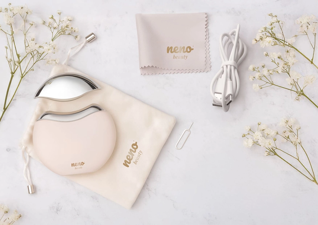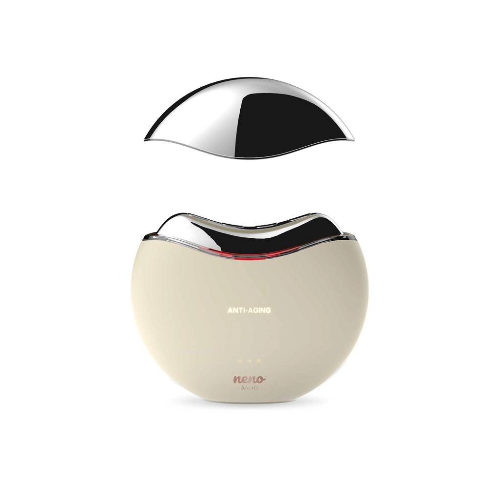 Neno Beauty Auri je elegantna naprava 5v1 za pomlajevanje kože obraza in vratu. Združuje radiofrekvenco, EMS mikroimpulze, rdečo LED svetlobo 620 nm in sonične vibracije v ergonomski glavici v obliki Gua Sha. Z dvema načinoma – Proti staranju in Poživitev – zlahka ciljate na učvrstitev kontur, glajenje drobnih gubic in poenotenje tena kože.