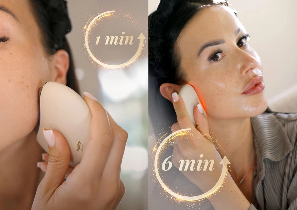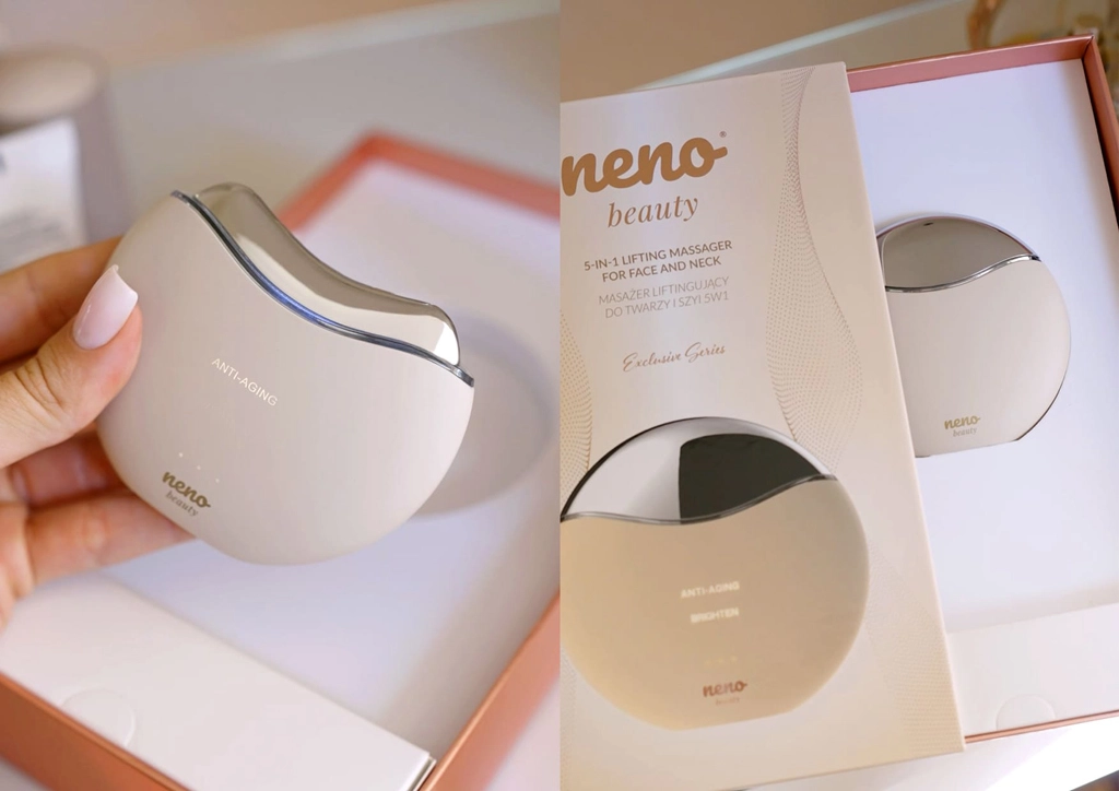 Privoščite si salonsko nego doma s kompaktno napravo Neno Beauty Auri. Njena ergonomska glavica Gua Sha in kombinacija tehnologij RF, EMS, rdeče LED 620 nm ter soničnih vibracij pomagajo učvrstiti, poživititi in zgladiti kožo v le nekaj minutah. Dva pametna načina, vgrajen časovnik in spominska funkcija zagotavljajo preprosto, učinkovito in prijetno vsakodnevno rutino.