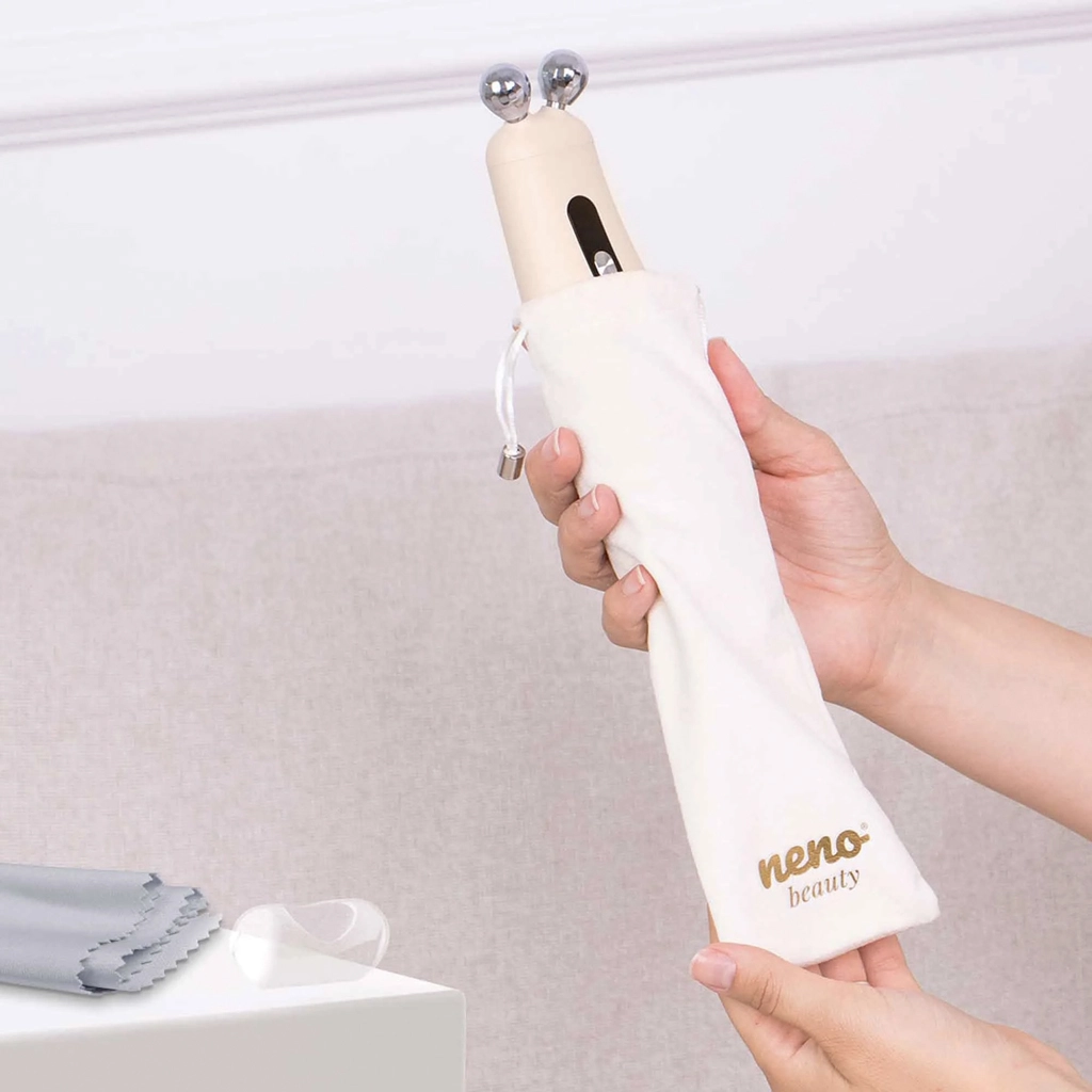 V elegantnem setu najdete tudi zaščitne pokrove za glave, shranjevalno etui torbico in mikrovlakneno krpico za higiensko uporabo in enostavno vzdrževanje. Za varnost in največji učinek uporabljajte prevodni gel za RF/EMS ter vodite masažne poteze od sredine obraza navzven in rahlo navzgor.