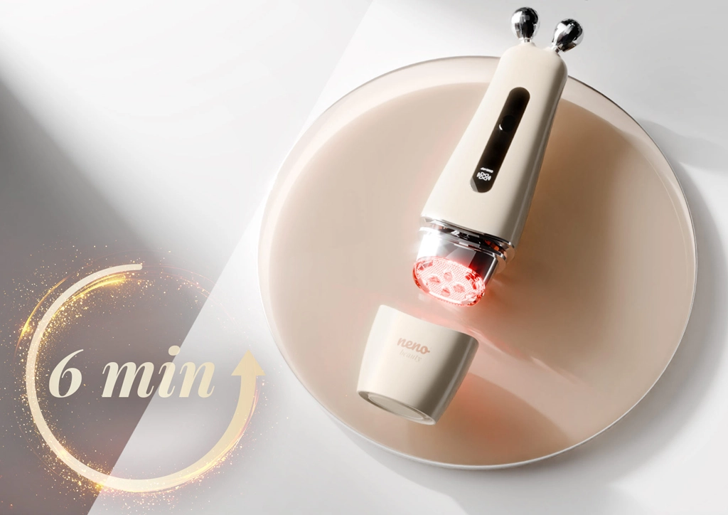 Privoščite si salonsko nego doma z napravo Neno Beauty Algo, ki združuje EMS mikro tokove, RF radiofrekvenco 4 MHz, sonične vibracije in LED svetlobo (rdeča 630–633 nm, rumena 590 nm) za naravno učvrstitev, toniranje in pojasnitev kože. Trije načini, dve stopnji intenzivnosti, dve zamenljivi glavi in pomnjenje zadnje nastavitve spremenijo vsakodnevno rutino v hiter in učinkovit ritual.