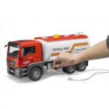 MAN TGS cisterna znamke Bruder je idealna za vse male ljubitelje tovornjakov. To vozilo ima odpirajoča se vrata in zložljiva ogledala, kar omogoča prilagodljivo igro. Inovativna zasnova vključuje ročno upravljano črpalko za stisnjen zrak in funkcionalno gumijasto cev na vitlu, ki zagotavlja realističen občutek med igro.